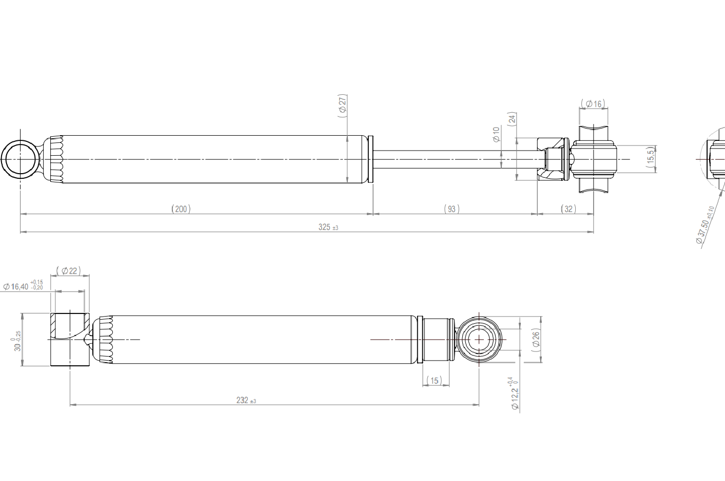 Schokdemper voor oplooprem/rem AL-KO 251S (oud type) voor aanhanger 2700 kg