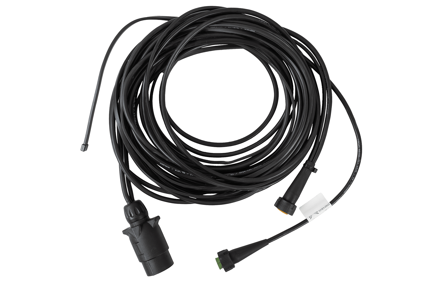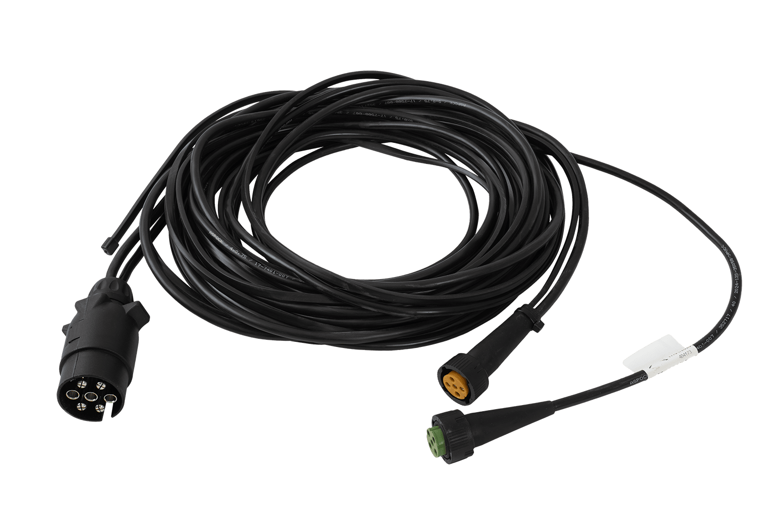 De elektrische installatie van ASPÖCK is een praktische en betrouwbare oplossing voor aanhangwagens van personenauto's. De 5 meter lange, 0,75 mm² hoofdkabel is voorzien van een standaard 7-polige stekker , waardoor hij universeel compatibel is met de meeste voertuigen.