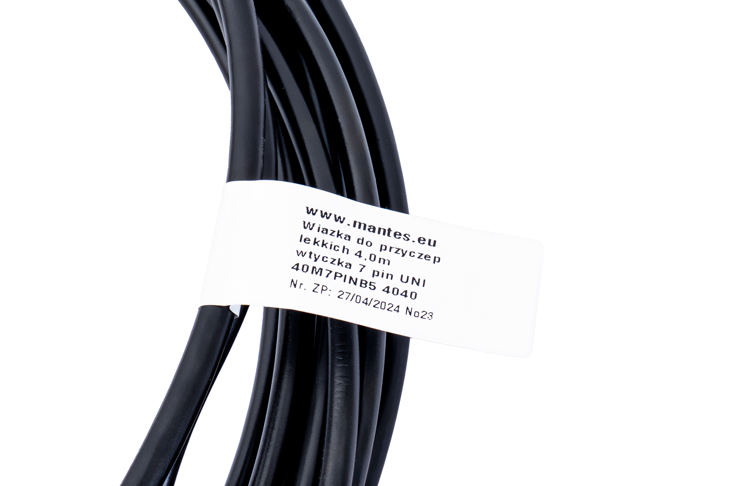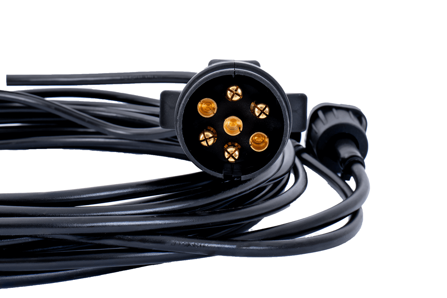 Het MANTES elektrische systeem is een praktische en betrouwbare oplossing voor aanhangwagens. De 4 meter lange hoofdkabel met een doorsnede van 0,5 mm² is voorzien van een standaard 7-polige stekker , waardoor universele compatibiliteit met de meeste voertuigen gegarandeerd is.