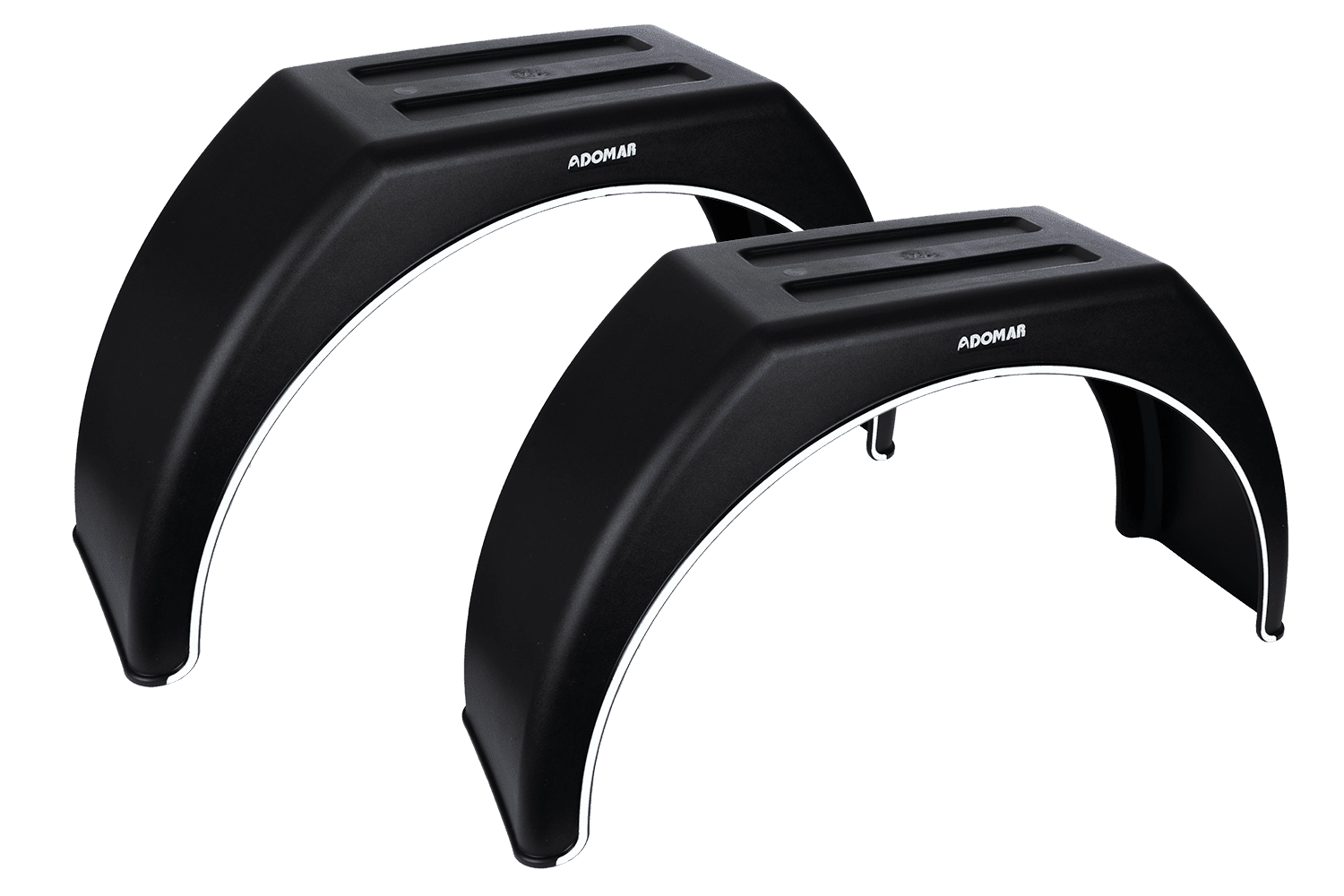 - Een paar enkele spatborden DK3110 DOMAR, ontworpen voor 14-17 inch wielen, zijn 870 mm lang en 260 mm breed. Ze beschermen de aanhanger en de lading tegen mechanische schade en andere weggebruikers tegen opspattend modder en stenen onder de wielen.