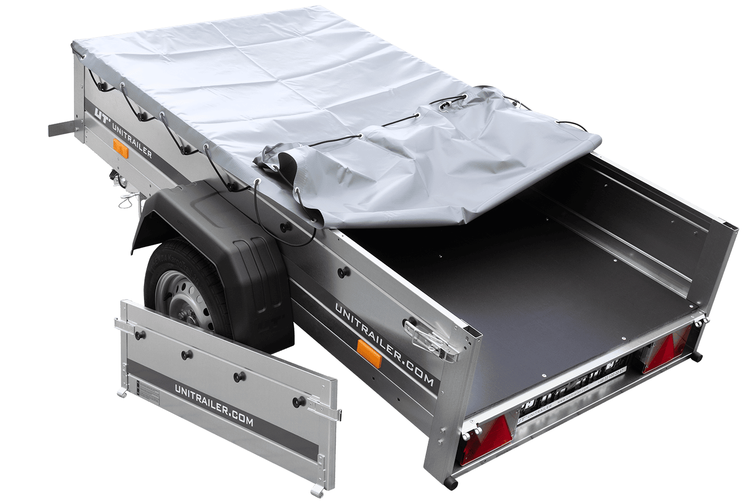 - Lichte aanhangwagen Garden Trailer 200 Unitrailer met inklapbare dissel. De aanhanger werd met vlakzeil en