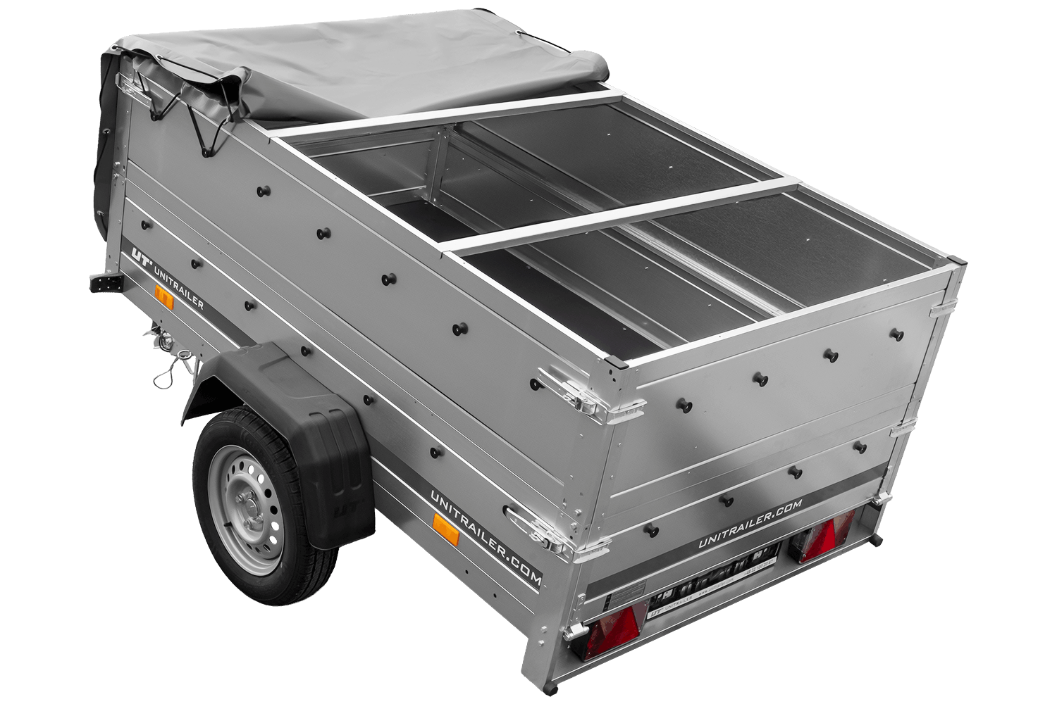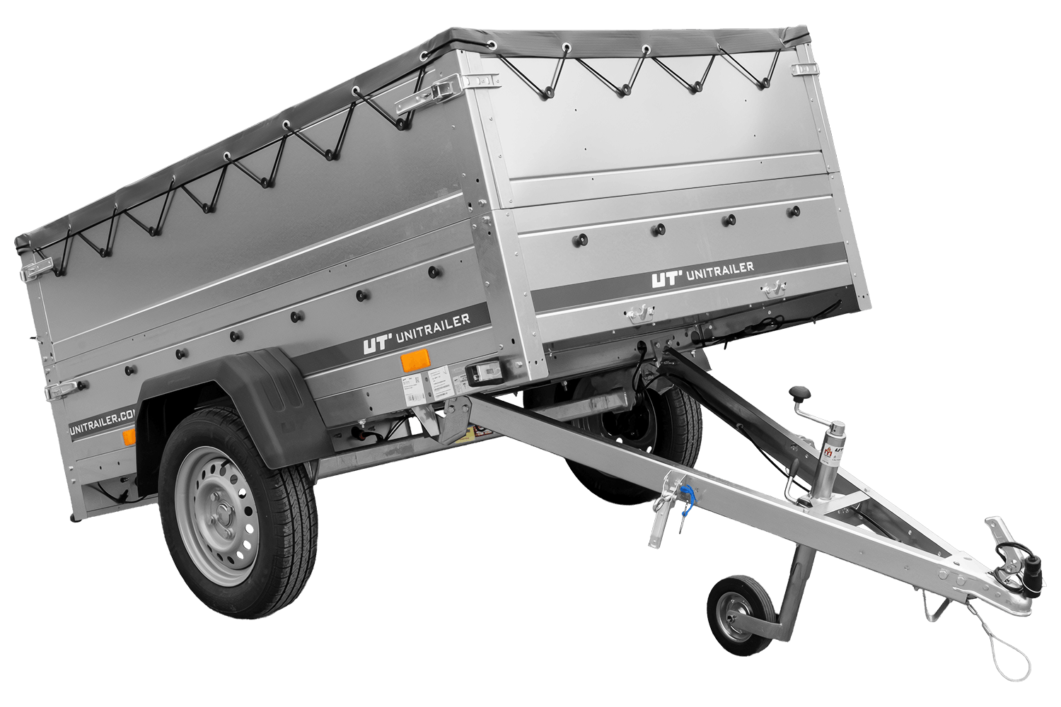 Een transportaanhanger met een laadruimte van 200 x 125 cm en een hoogte van 70 cm . Het populaire UNITRAILER tuinaanhangermodel 201 KIPP wordt in Polen geproduceerd. Uitgerust met een neuswiel, extra BIS-zijwanden en een afneembaar vlak afdekzeil. De vering is gebaseerd op een enkele, ongeremde AL-KO of KNOTT as. Een V-vormige, kantelbare dissel en een openklapbare achterwand. De aanhanger is volledig gegalvaniseerd en wordt geleverd met 2 jaar garantie bij meer dan 250 erkende servicecentra in Polen en Europa. 155/70 R13 wielen met stalen velgen absorberen oneffenheden in het wegdek. De kunststof spatborden zijn corrosiebestendig en zeer duurzaam.