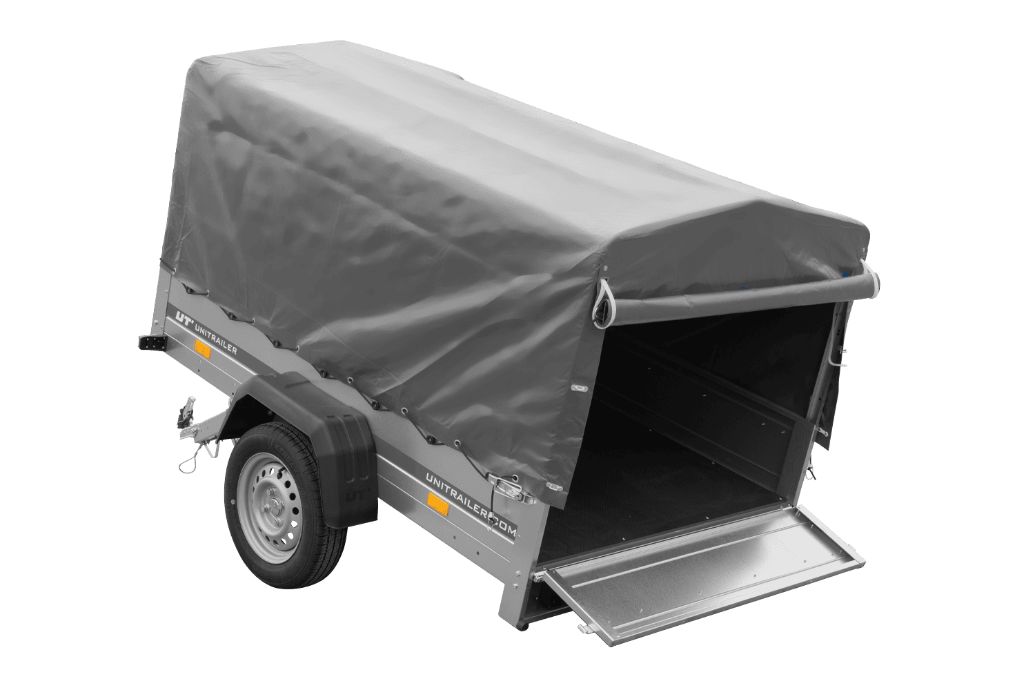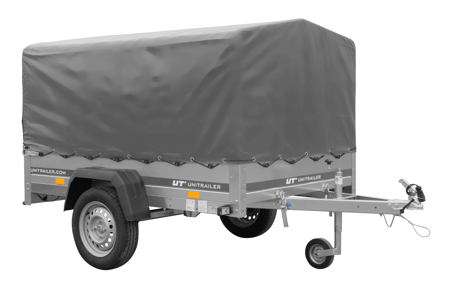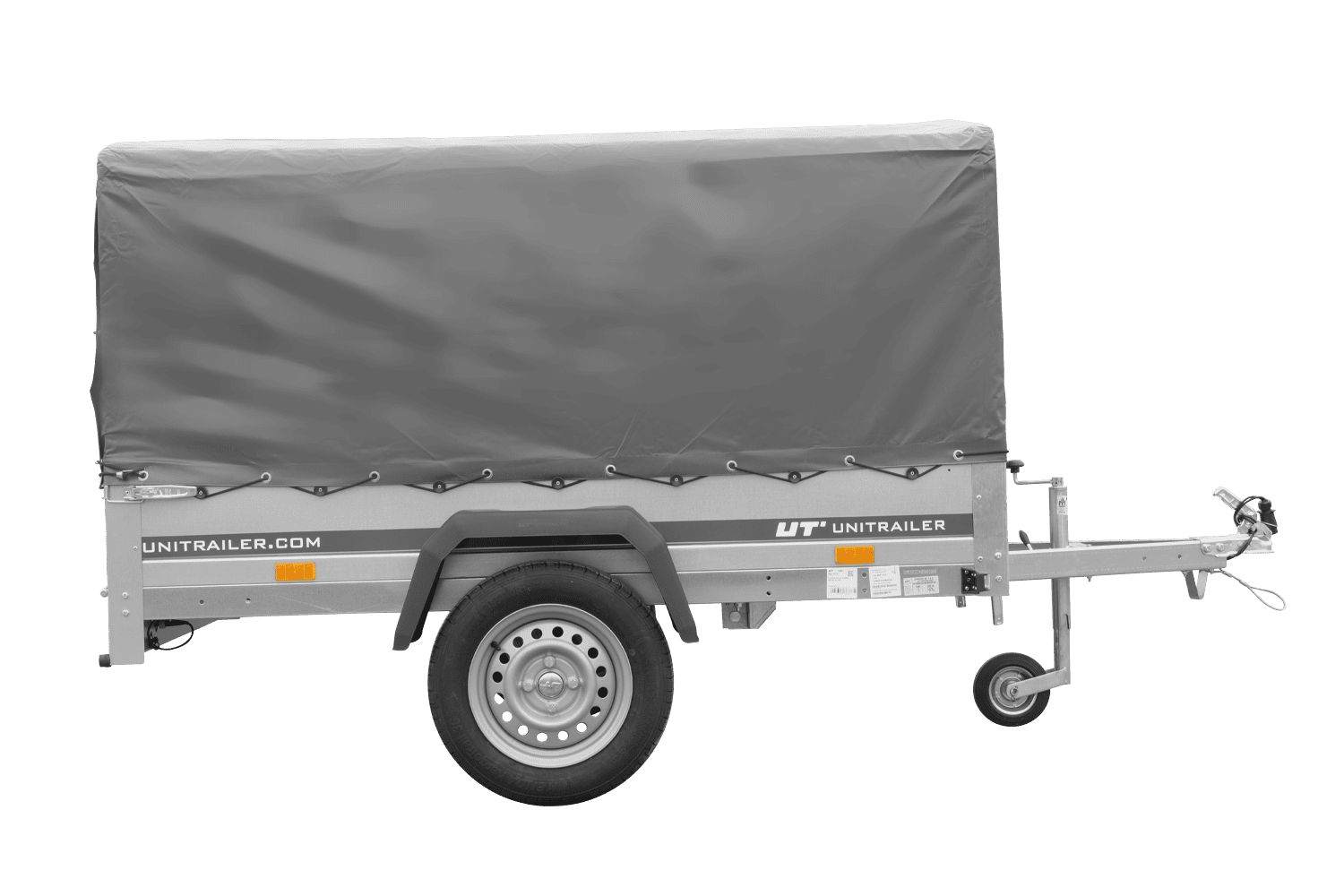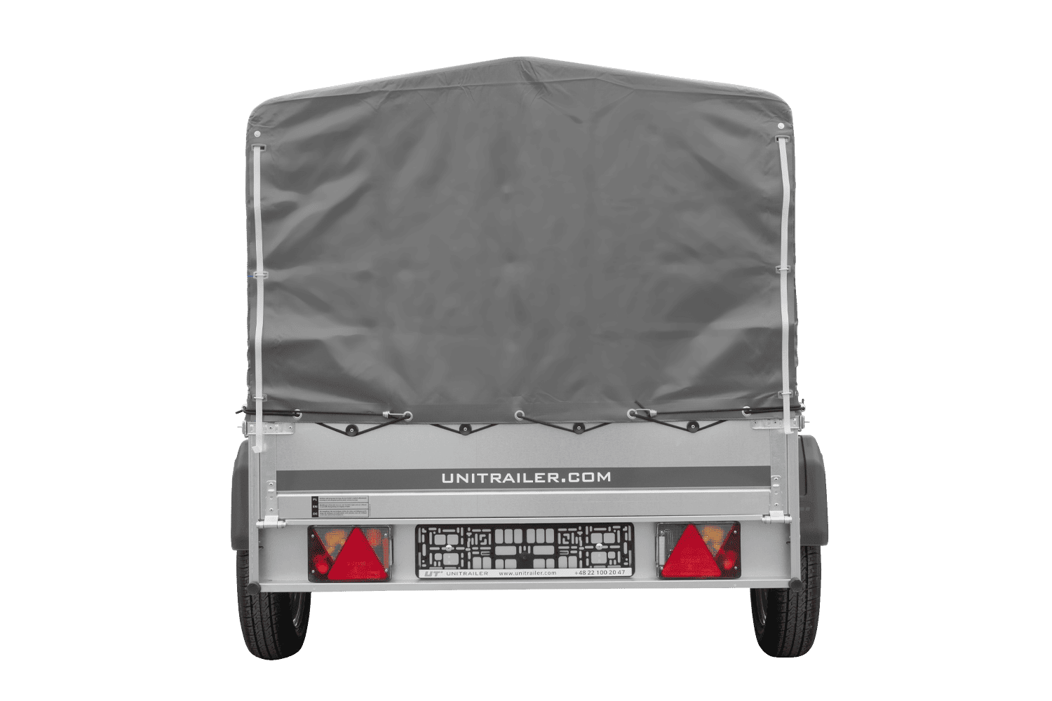 Enkelassige aanhanger 200x125 UNITRAILER GARDEN 201 KIPP met H-800 frame en grijze afdekking