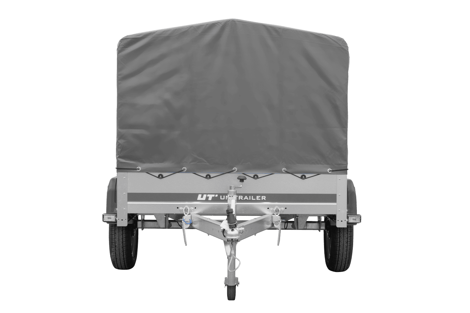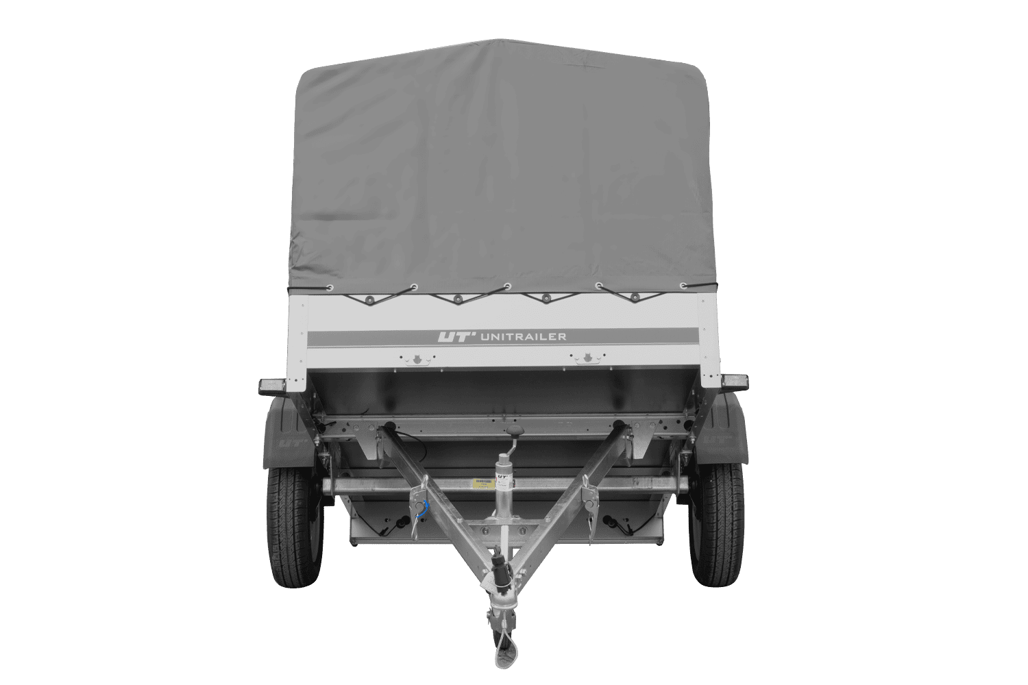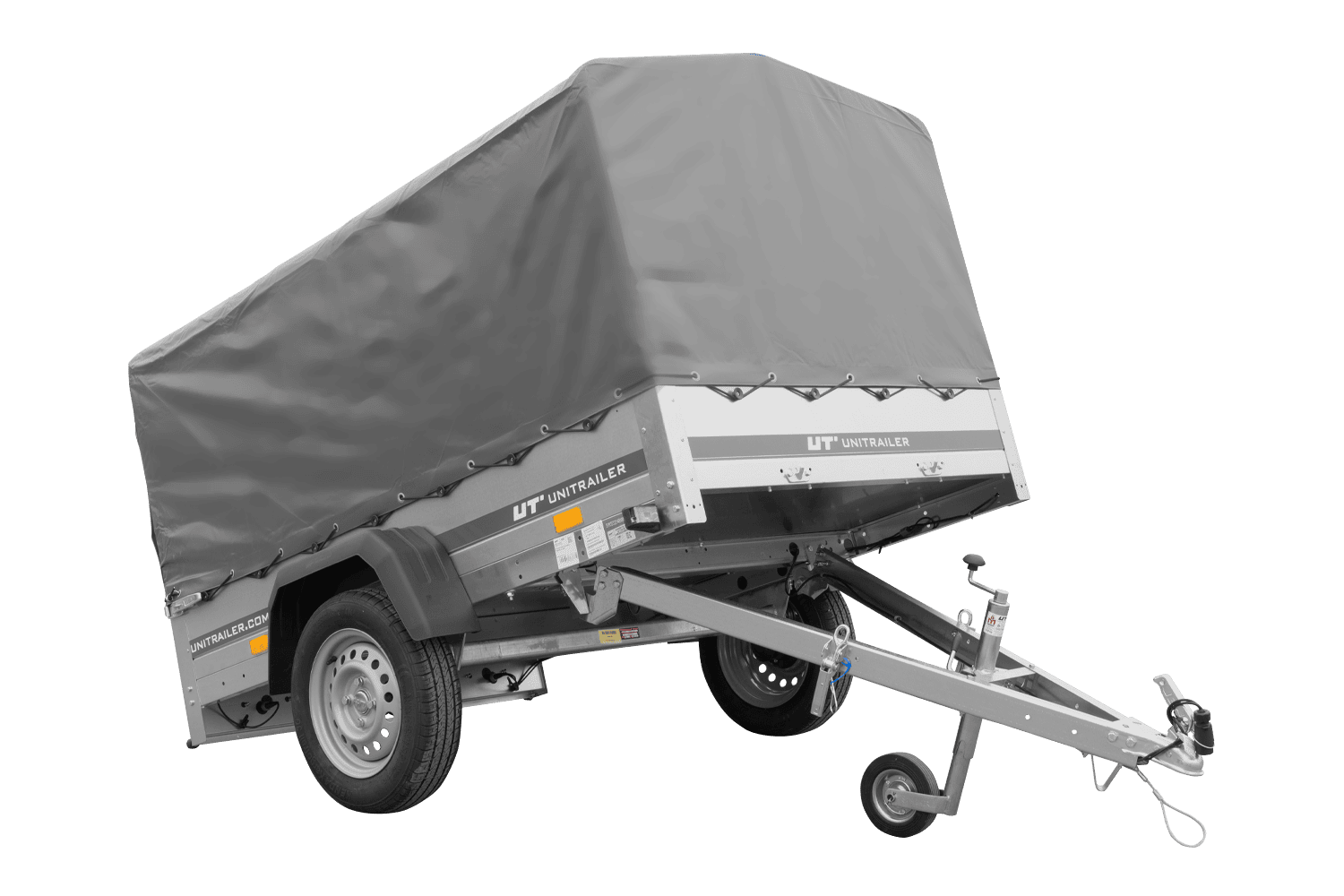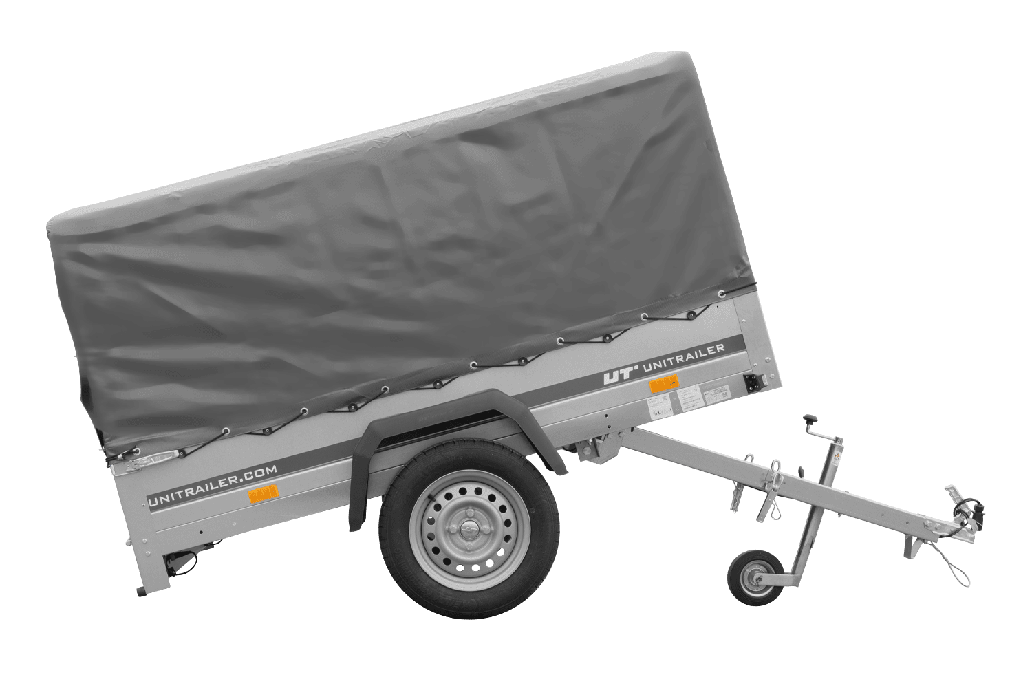 Enkelassige aanhanger 200x125 UNITRAILER GARDEN 201 KIPP met H-800 frame en grijze afdekking