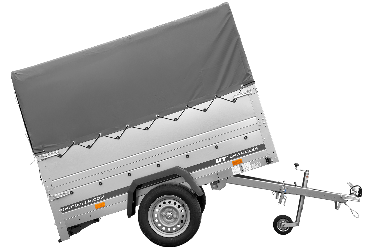 - UNITRAILER Tuinaanhanger 201 KIPP kipper met kantelbare dissel. Laadruimte 200x125 cm. Hoogte met extra zijwanden en frame 150 cm. Bruto voertuiggewicht (GVW) 300-750 kg. Levering aan huis via een transportbedrijf.
