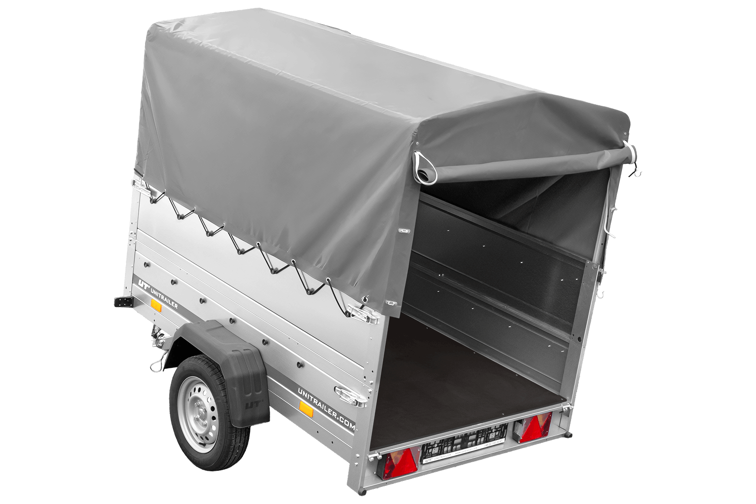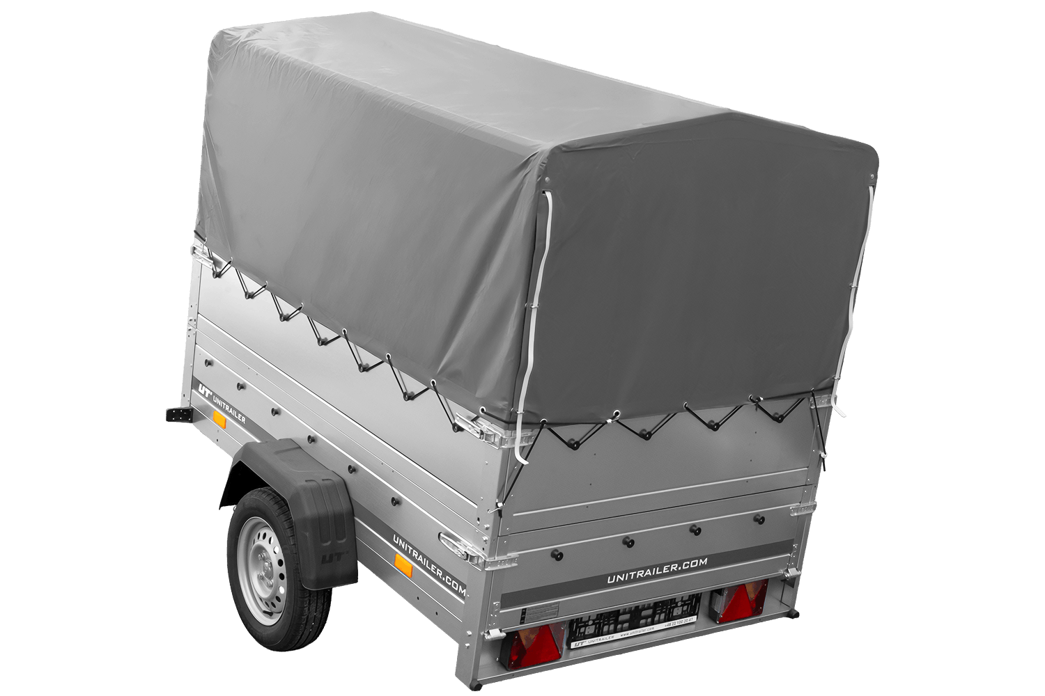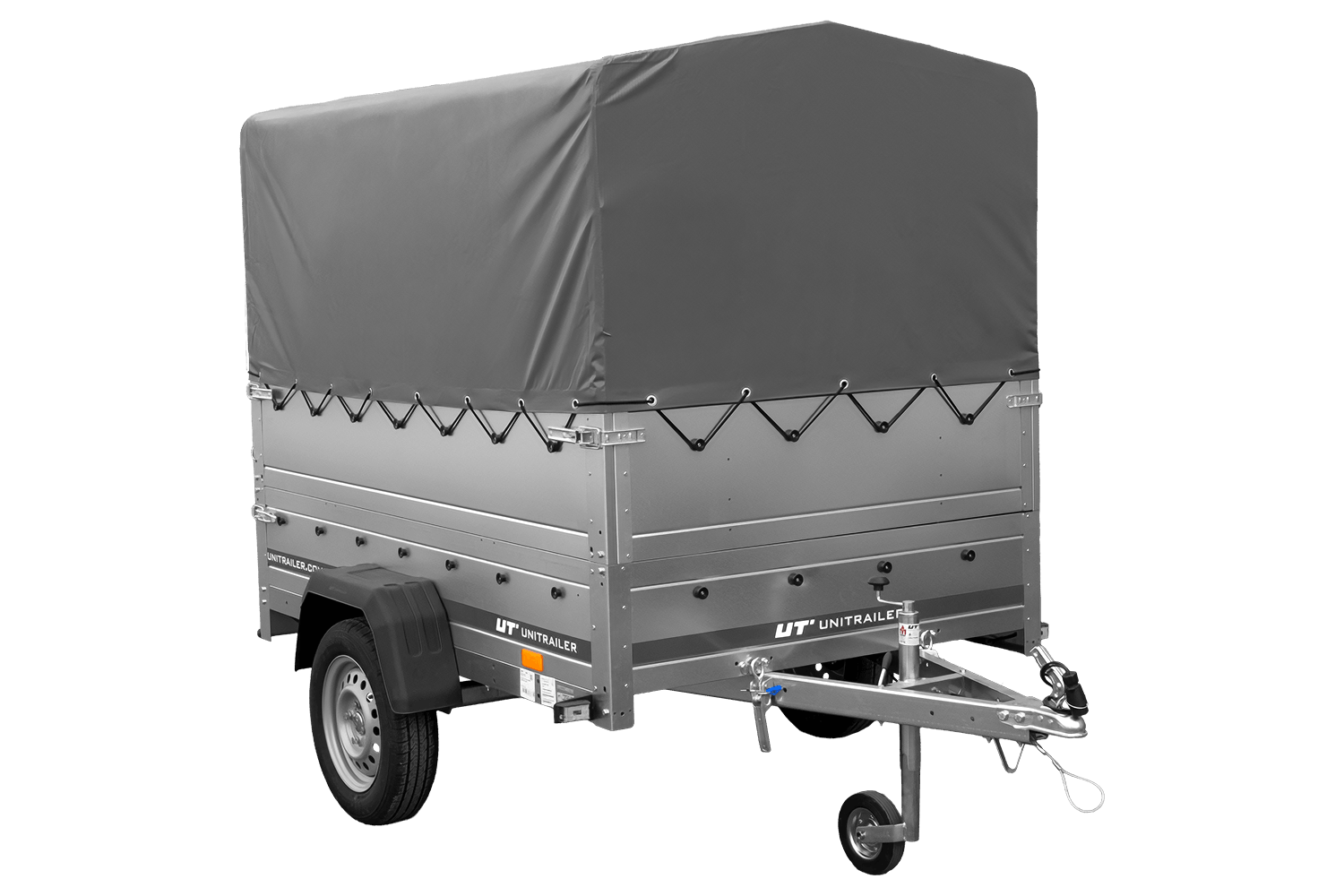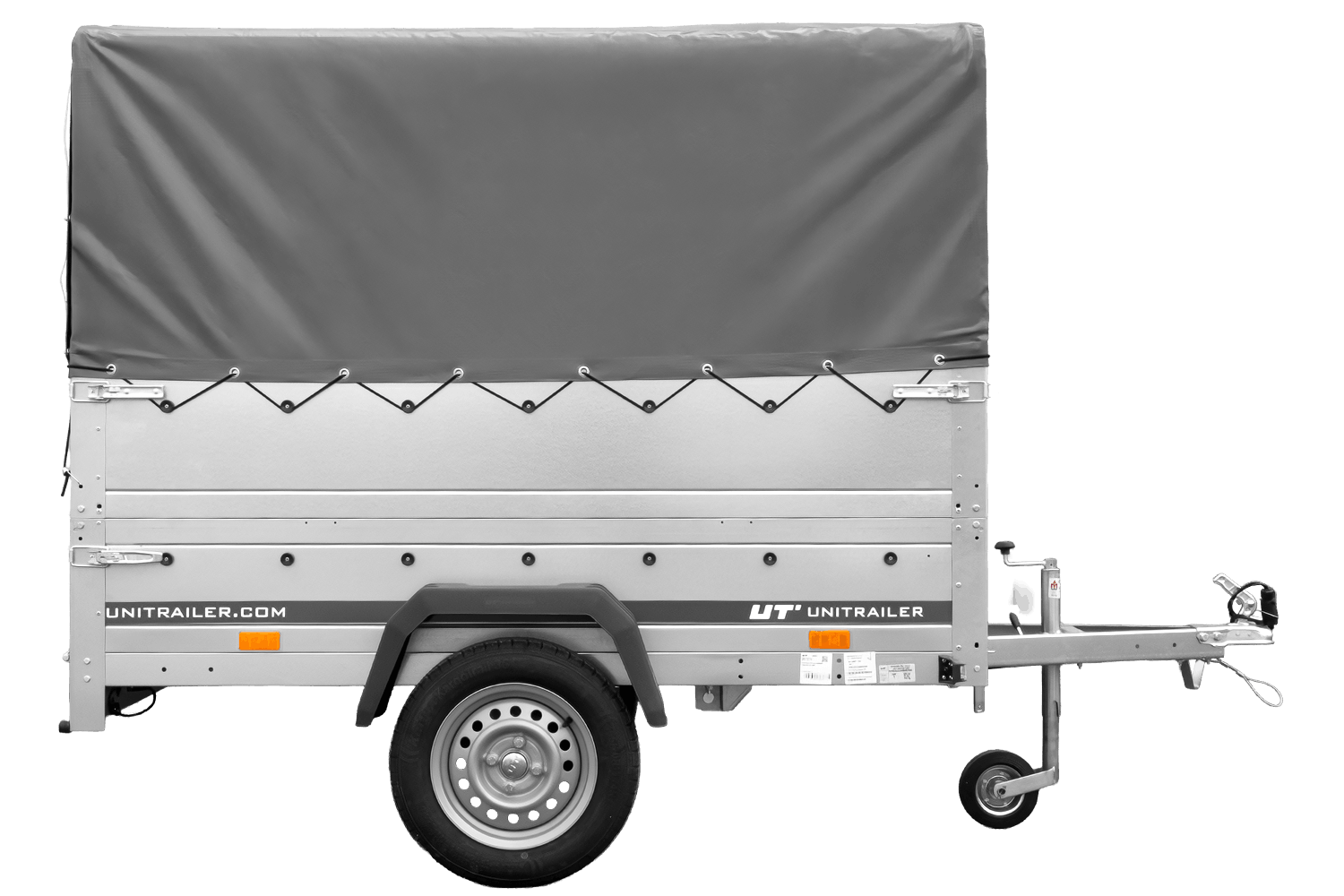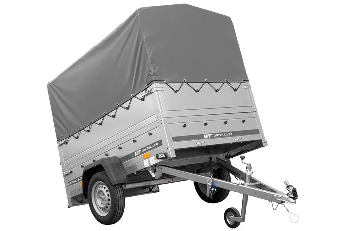 Autoaanhanger 200x125 UNITRAILER GARDEN 201 KIPP met BIS-zijwanden, H-800 frame en grijze afdekking
