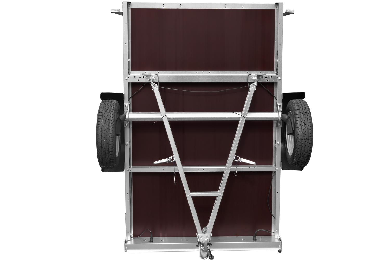 - CHASSIS - stuuras van Knott of ALKO - op maat gemaakt voor Unitrailer. Wielmaten: 155/70 R13. Draaibare V-vormige dissel die op elk moment onder de trailerbodem kan worden weggeklapt.