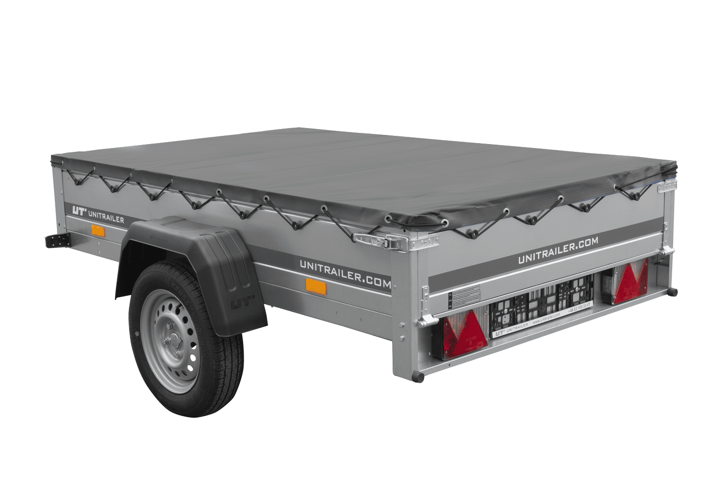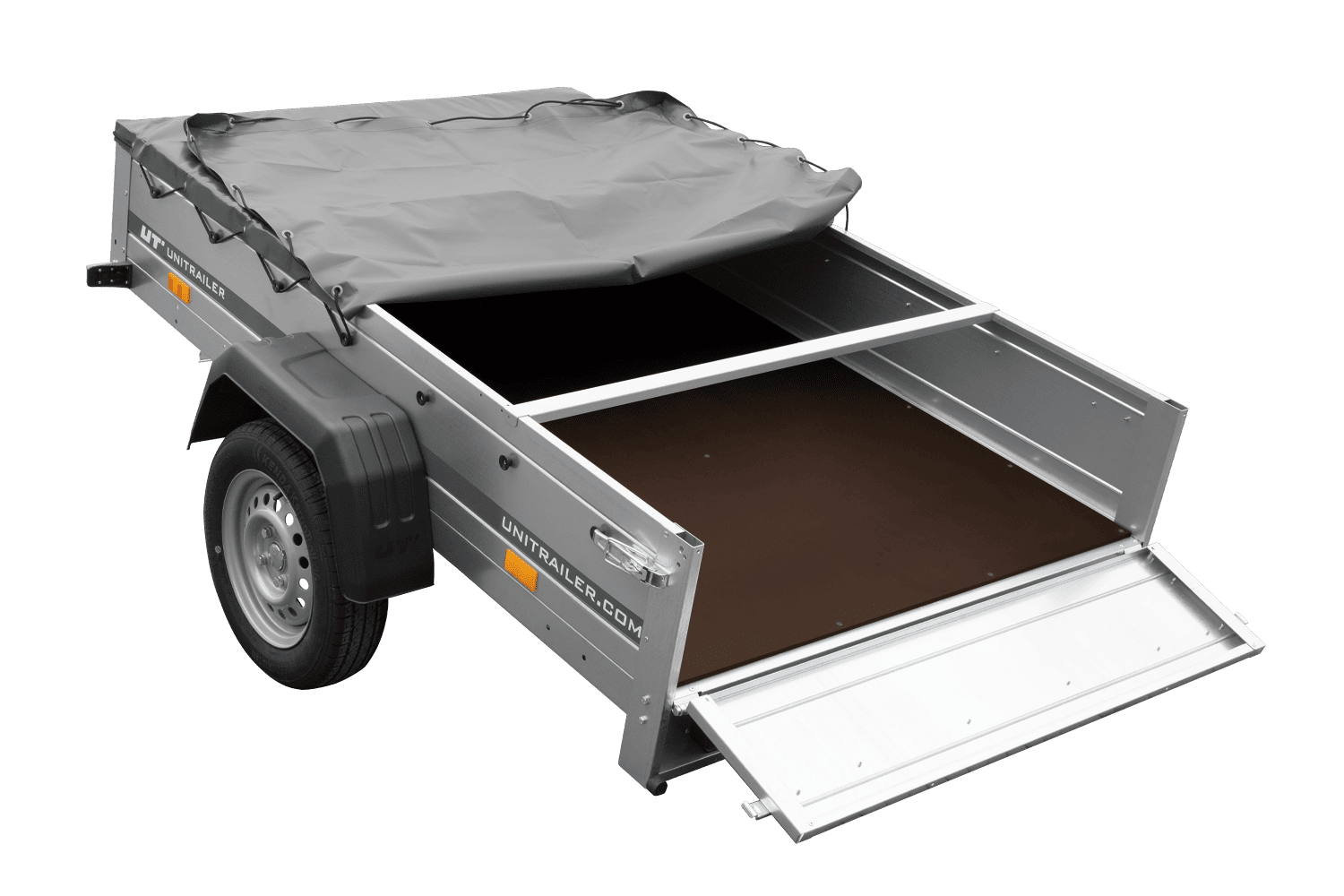 Autoaanhanger 200x125 UNITRAILER GARDEN 201 KIPP met H-0 frame en grijze afdekking