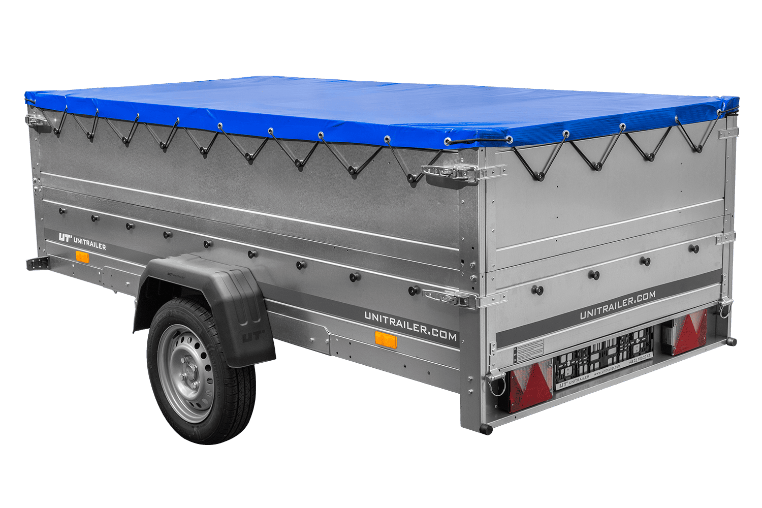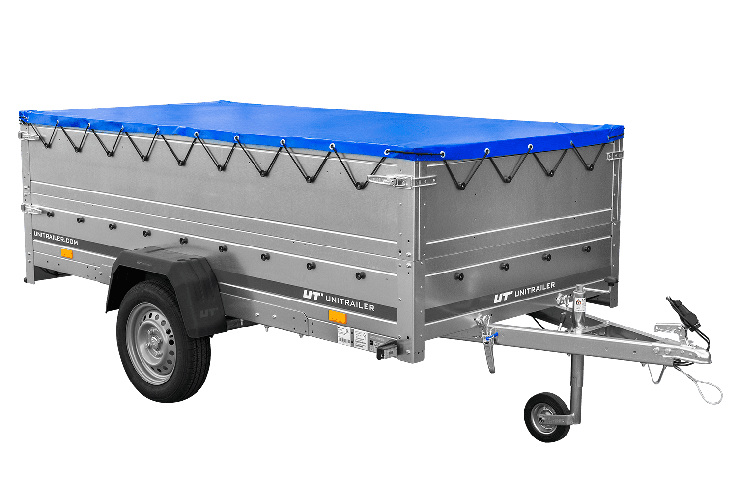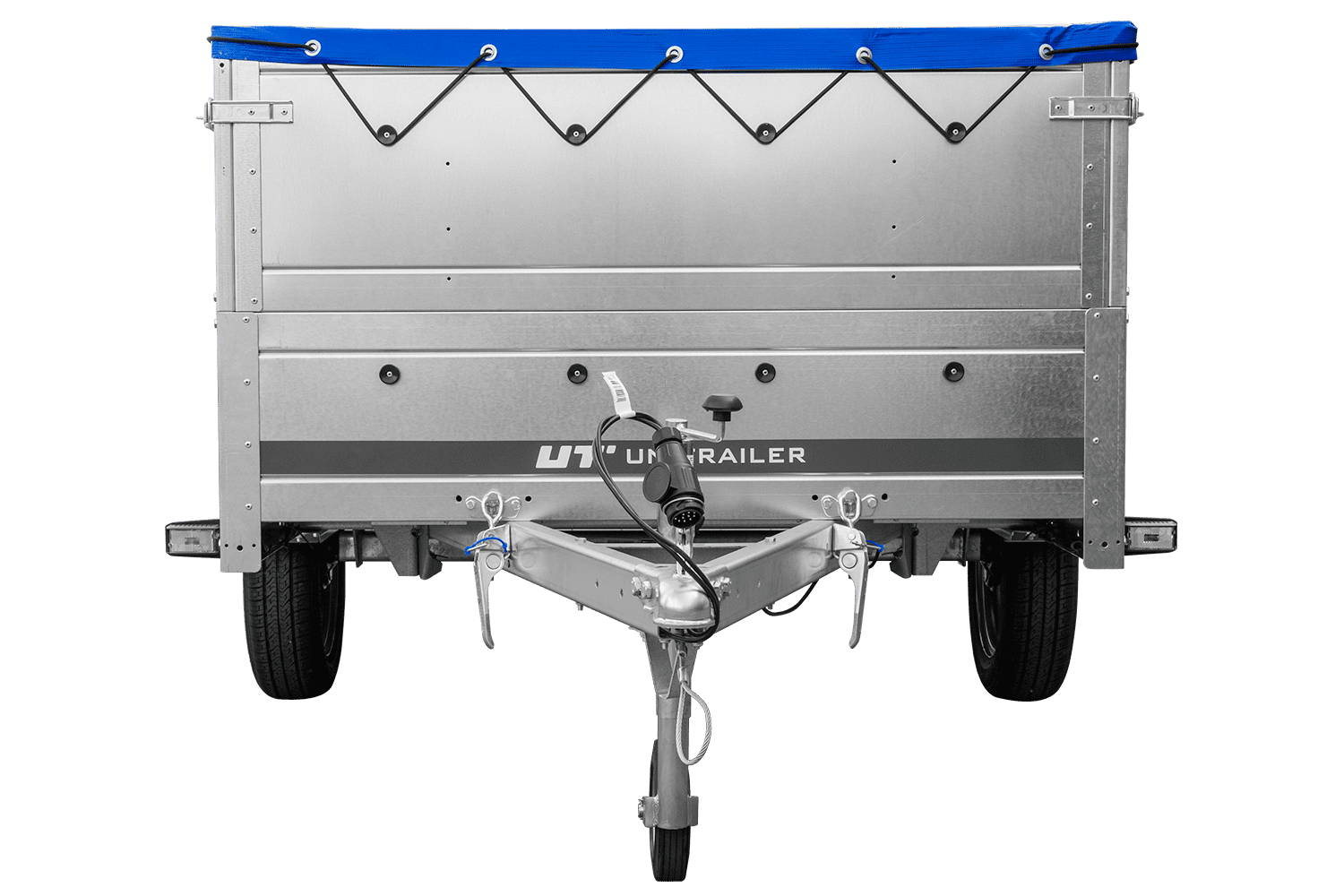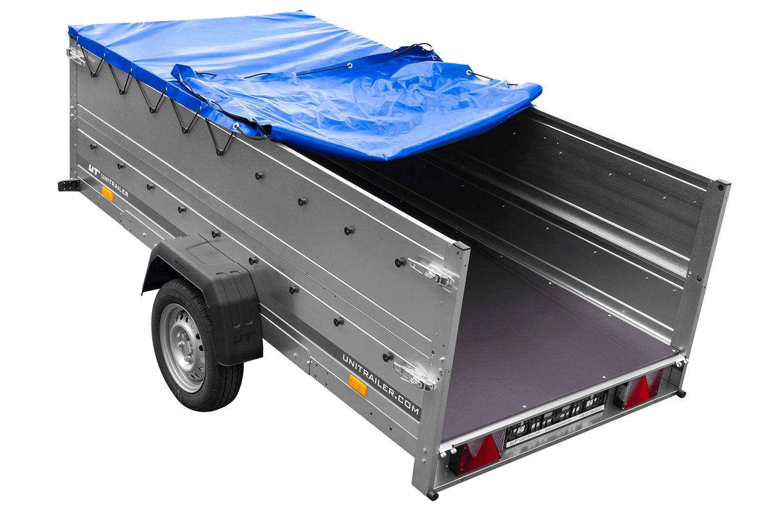 Enkelassige aanhanger 264x125 UNITRAILER GARDEN 264 KIPP met BIS zijwanden en blauw dekzeil
