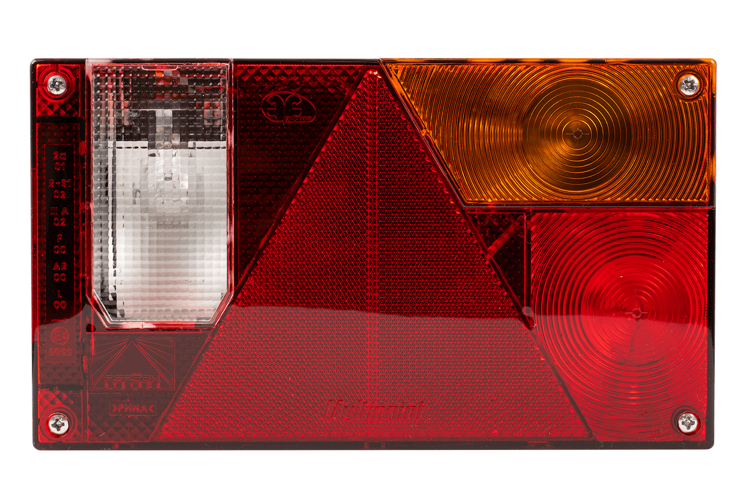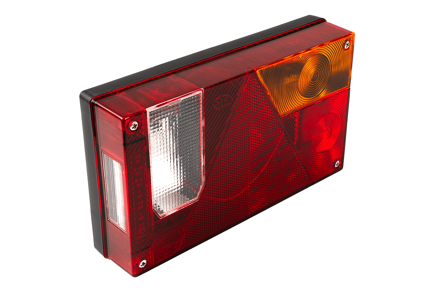 - Multipoint I achterlicht voor montage aan de rechterzijde. Het heeft de volgende functies: achterlicht, remlicht, achteruitrijlicht, kentekenverlichting, richtingaanwijzer en reflector. Voor gebruik in aanhangwagens, vrachtwagens en landbouwmachines.
