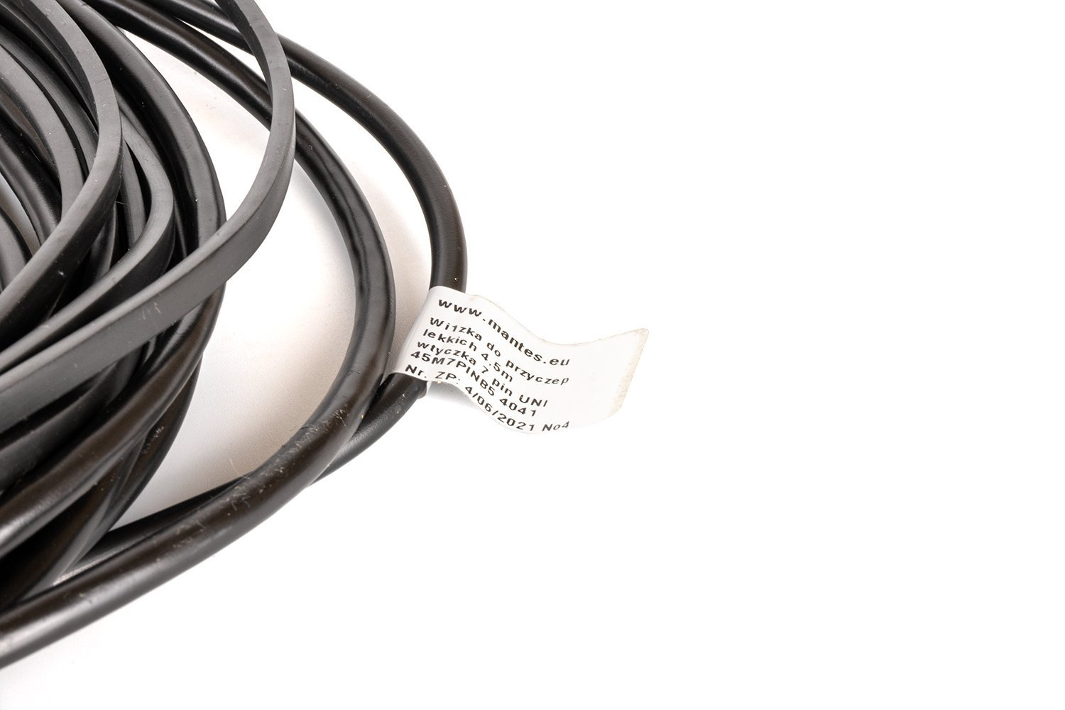 Het MANTES elektrische systeem is een praktische en betrouwbare oplossing voor aanhangwagens. De 5,2 meter lange hoofdkabel met een doorsnede van 0,5 mm² is voorzien van een standaard 7-polige stekker , waardoor universele compatibiliteit met de meeste voertuigen gegarandeerd is.