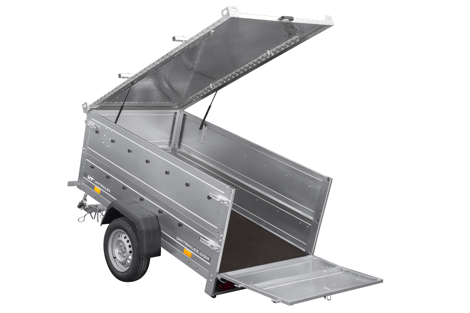 UNITRAILER Garden Trailer 200 KIPP met een afdekzeil met een MTM tot 750 kg. Hij heeft een achterwand die geopend kan worden, dus is het laden en lossen in enkele minuten mogelijk! Dankzij het gebruik van een kantelbare dissel kan deze op elke plek verticaal aan de achterzijde worden geplaatst. De aanhangers van de serie KIPP Garden Trailer 200 hebben nog een ander voordeel, namelijk de mogelijkheid om ze te kiepen waardoor het lossen van losse goederen comfortabel en snel gaat. De trailer is voorzien van BIS zijwanden waardoor de laadhoogte wordt vergroot. BIS zijkanten zijn demonteerbaar.