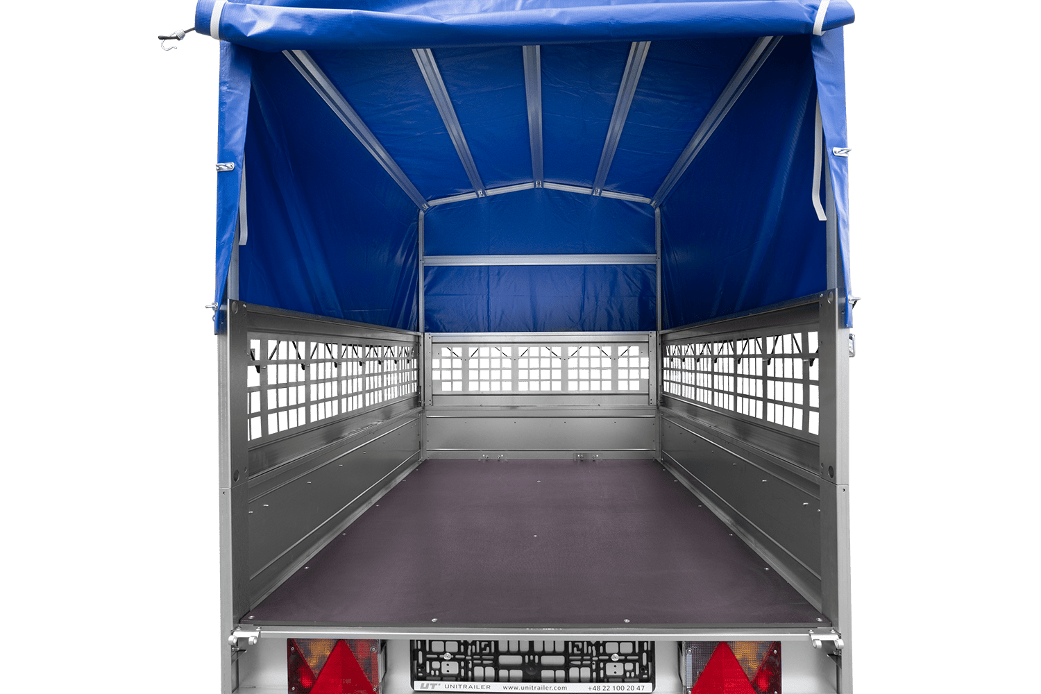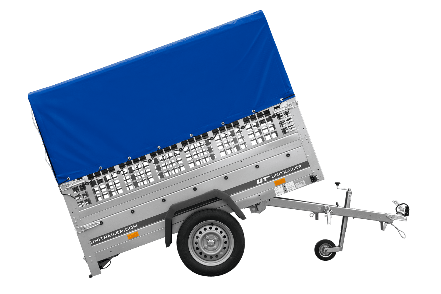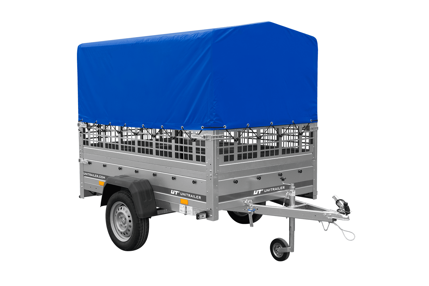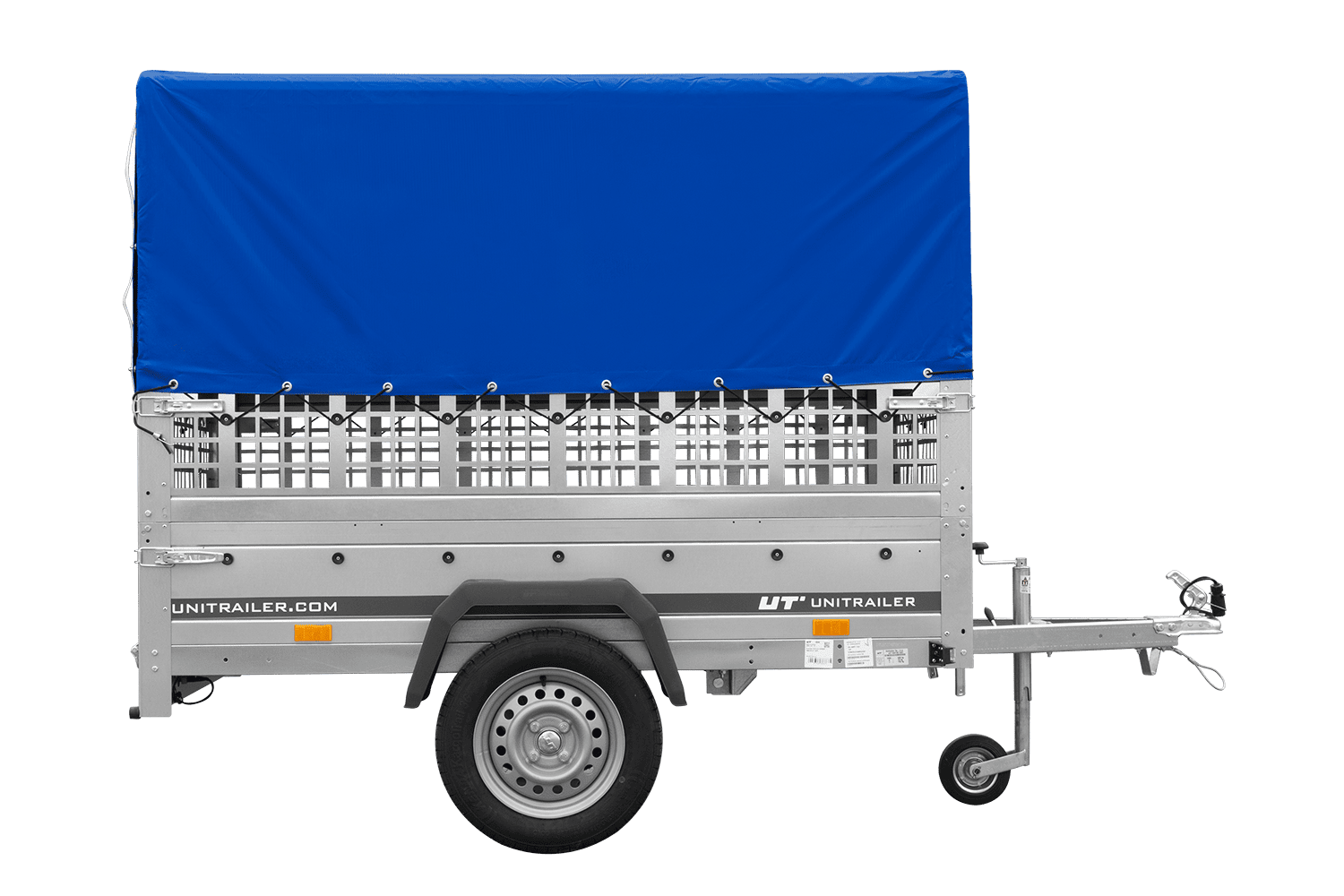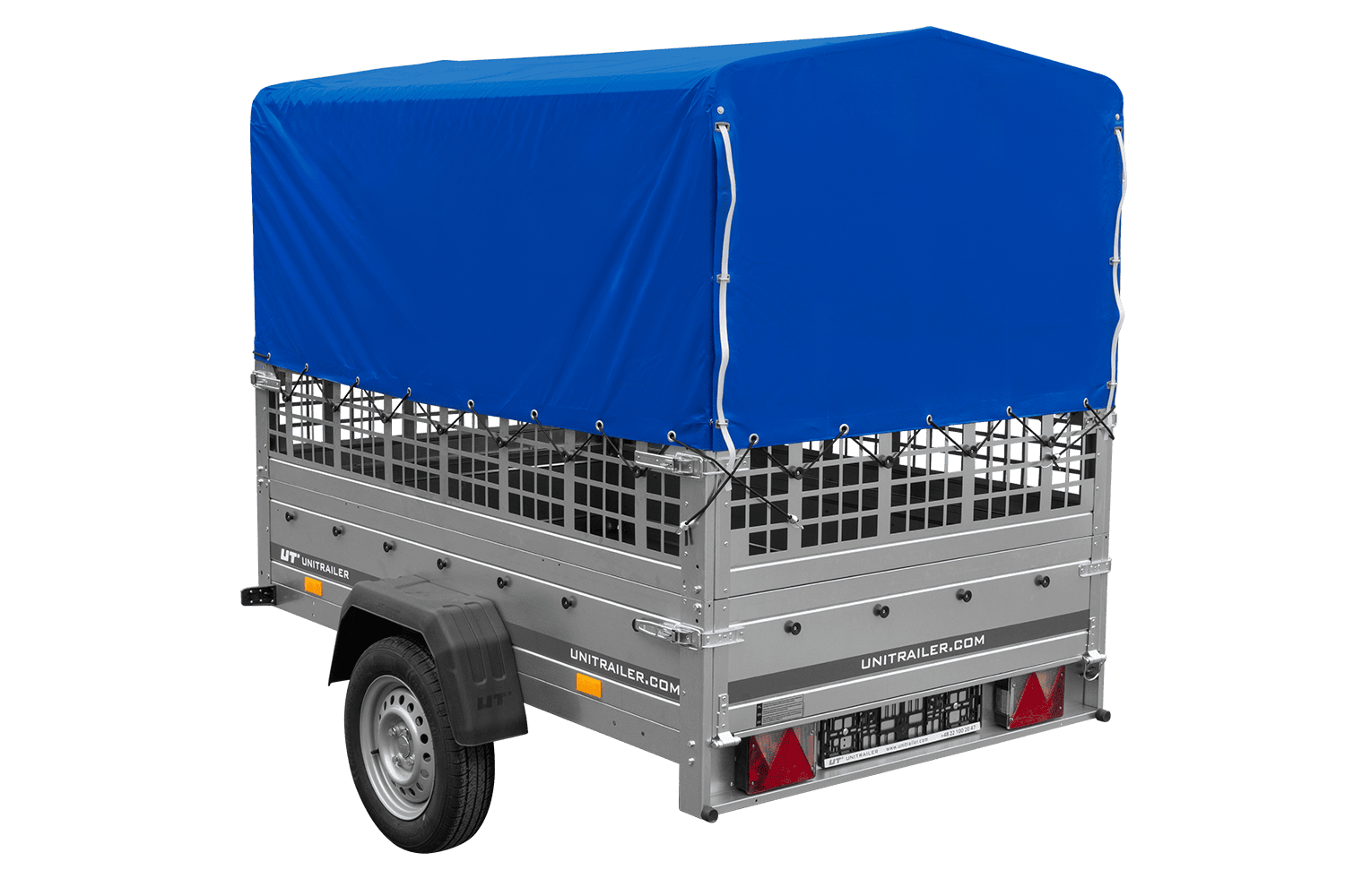 Autoaanhanger 200x125 UNITRAILER GARDEN 201 KIPP met gaaswanden, H-800 frame en grijs dekzeil