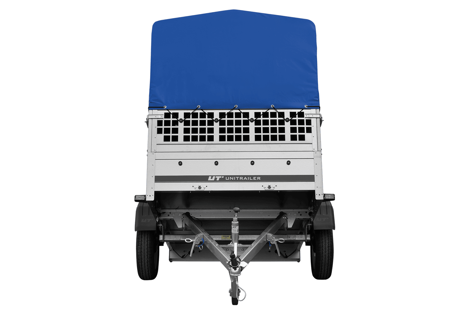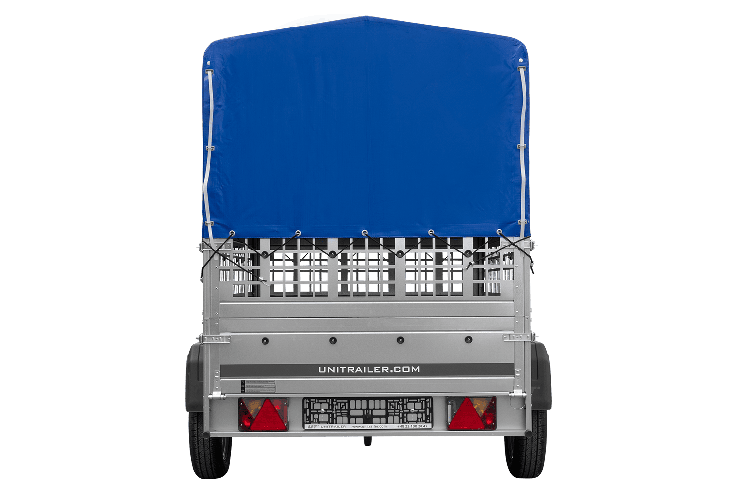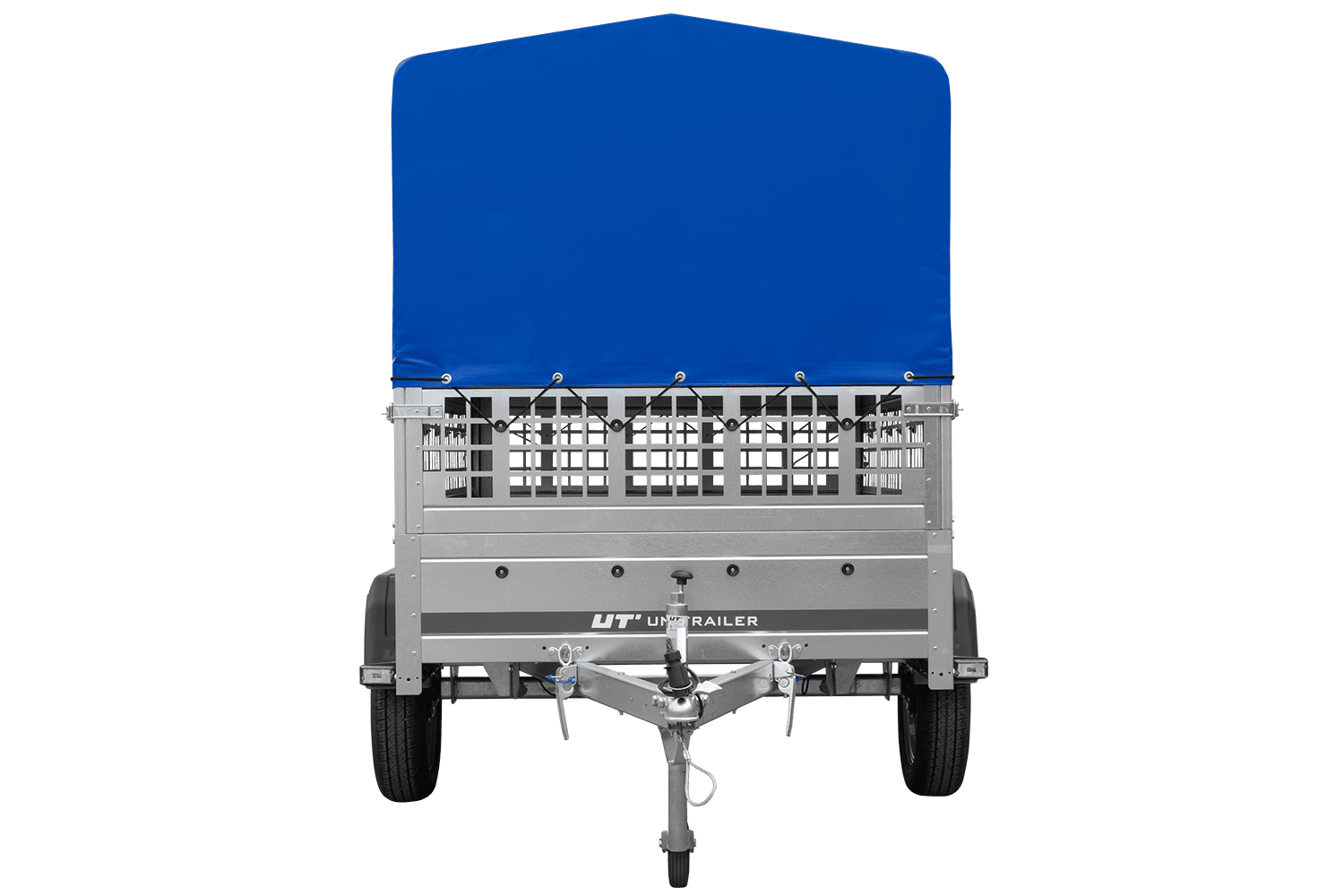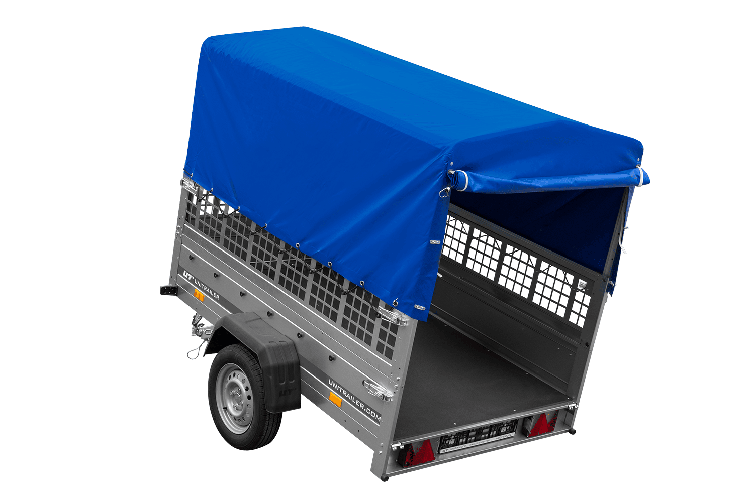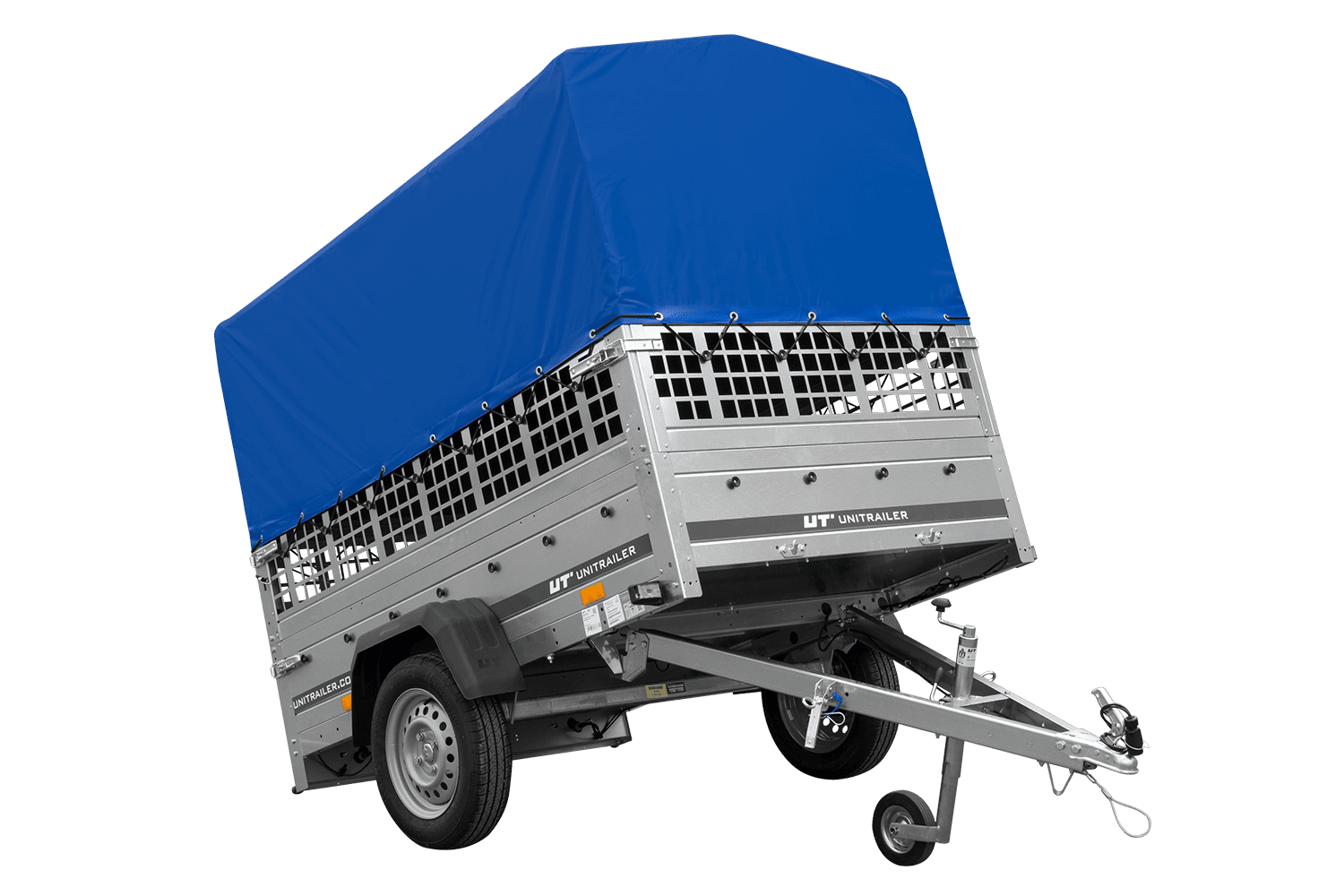 Autoaanhanger 200x125 UNITRAILER GARDEN 201 KIPP met gaaswanden, H-800 frame en grijs dekzeil