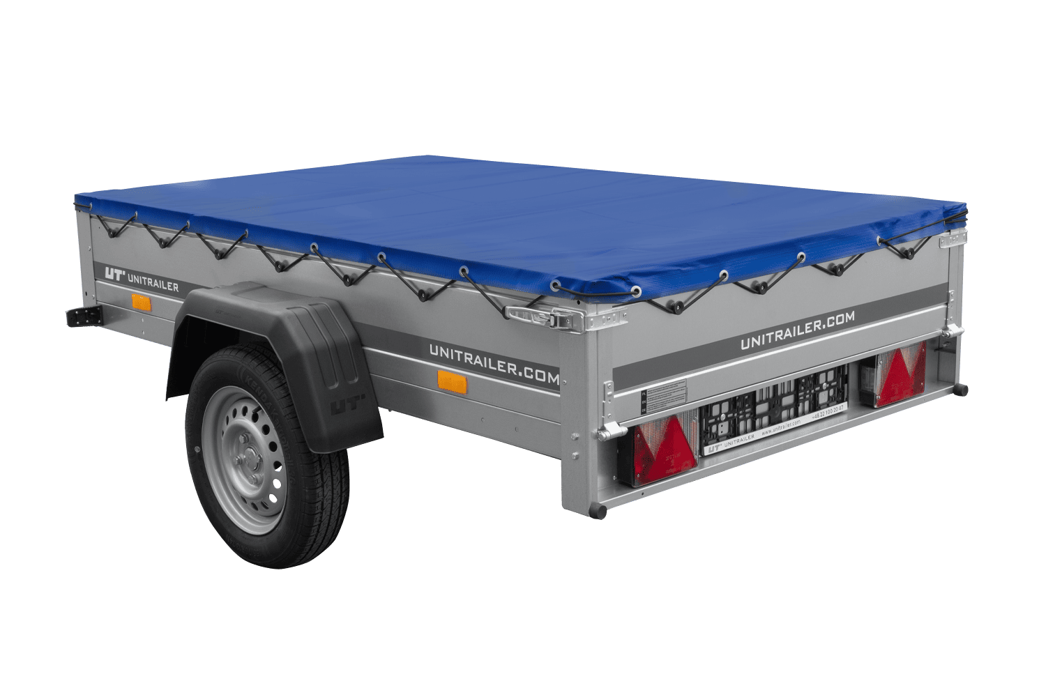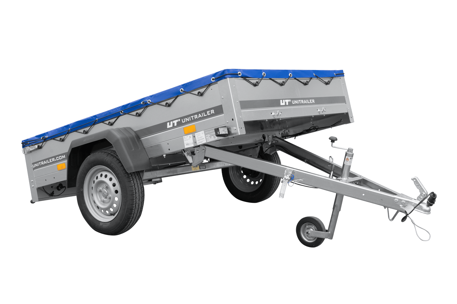 Autoaanhanger 200x125 UNITRAILER GARDEN 201 KIPP met H-0 frame en blauwe hoes