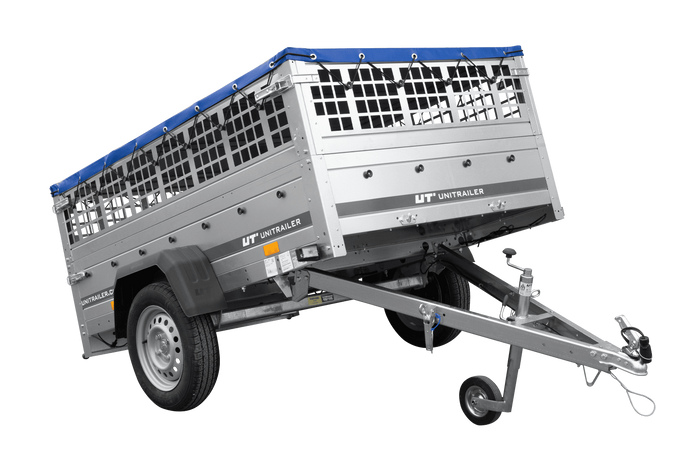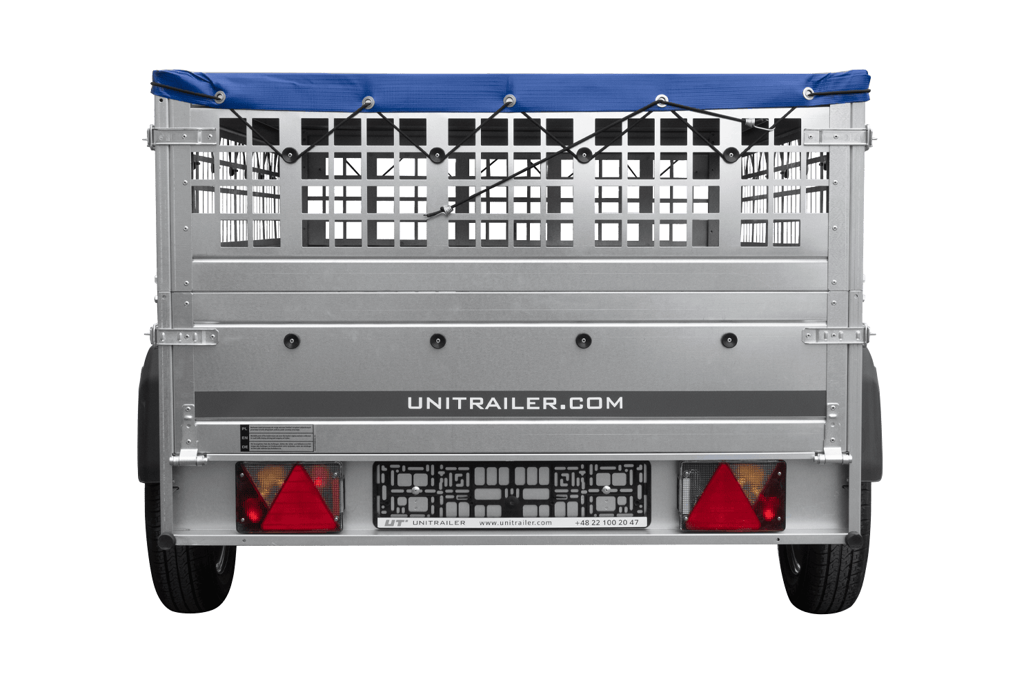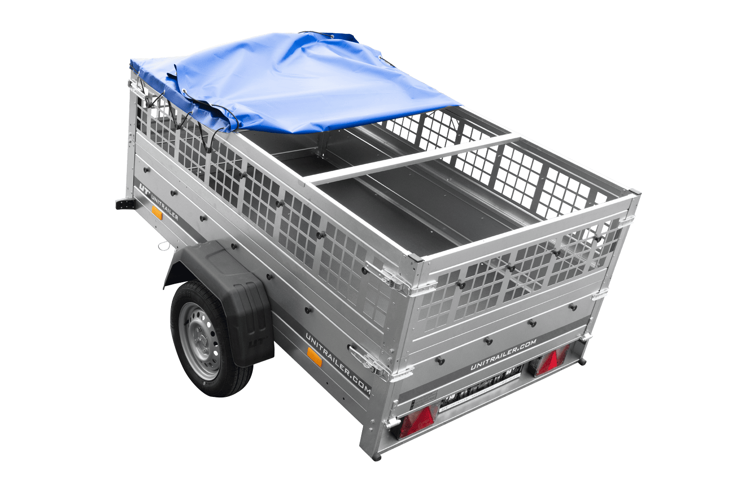 Deze brede aanhanger met gaaswanden is ontworpen voor het vervoeren van bredere ladingen . Het maximale totaalgewicht (GVWR) van de aanhanger is 750 kg. De aanhanger is voorzien van een blauw, vlak dekzeil met een H-0 frame , dat zorgt voor een goede spanning en de goederen beschermt tegen vocht en nattigheid. Een ander kenmerk van de aanhanger is een steunwiel , handig bij het manoeuvreren wanneer de aanhanger leeg is. De aanhanger heeft een kantelfunctie met een kantelbare dissel , waardoor de aanhanger rechtop op zijn achterover kan worden gestapeld. Dit bespaart aanzienlijk veel ruimte in uw garage. De 40 cm hoge gaaswanden vergroten de laadruimte en kunnen indien nodig worden verwijderd.