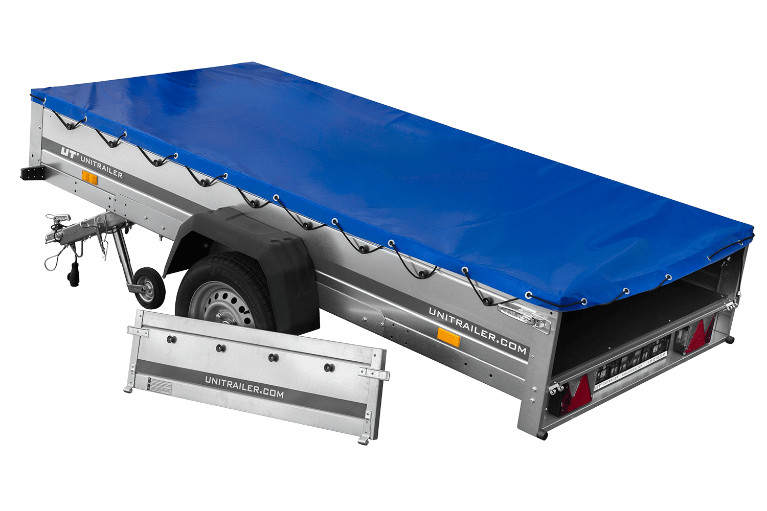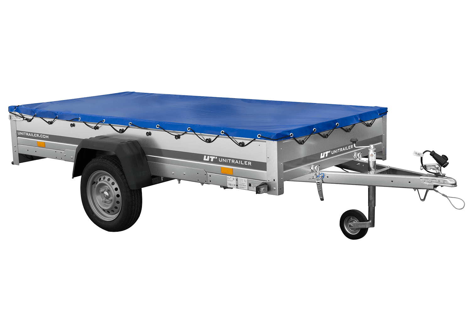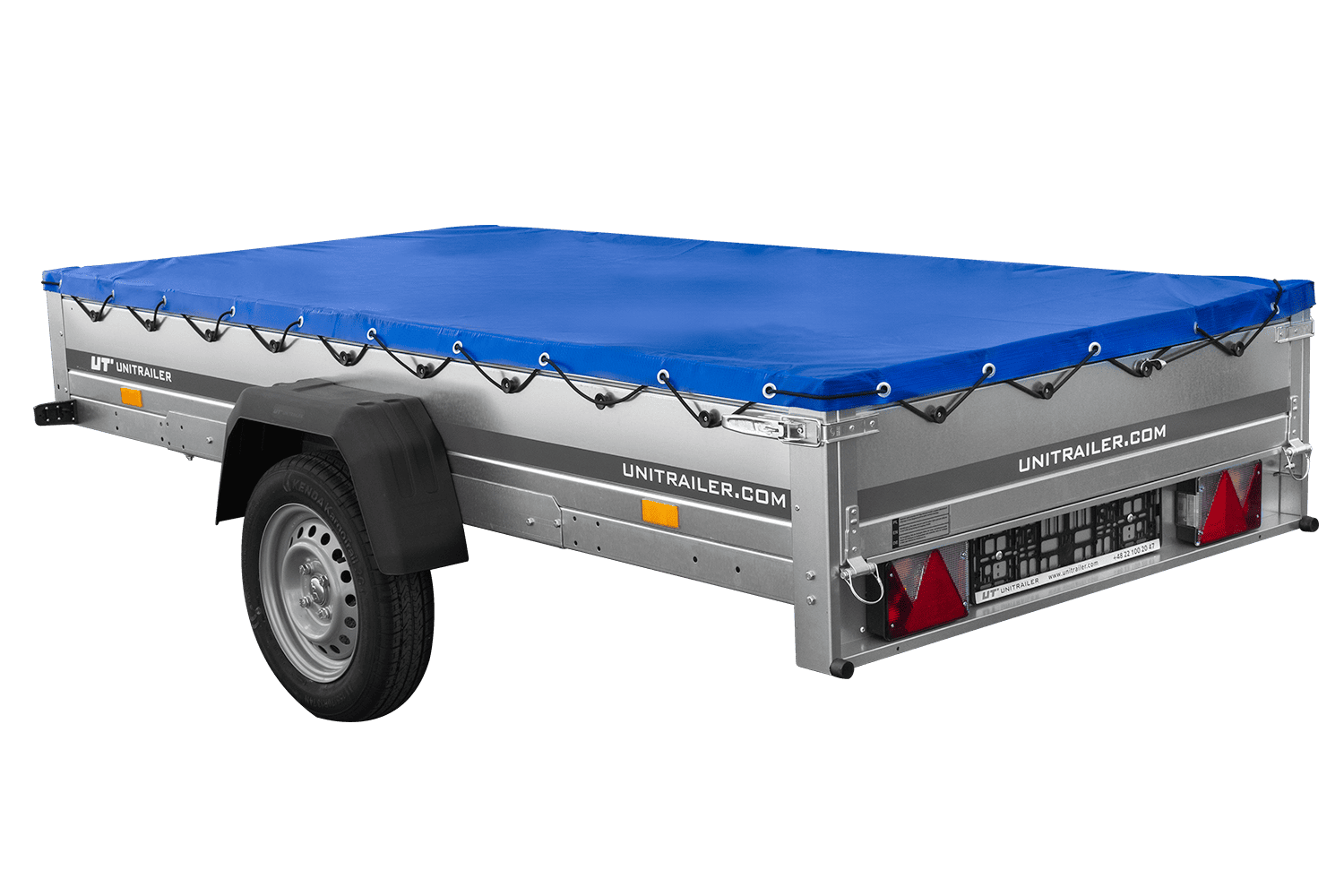 Enkelassige aanhanger 264x125 UNITRAILER GARDEN 264 KIPP met blauw dekzeil