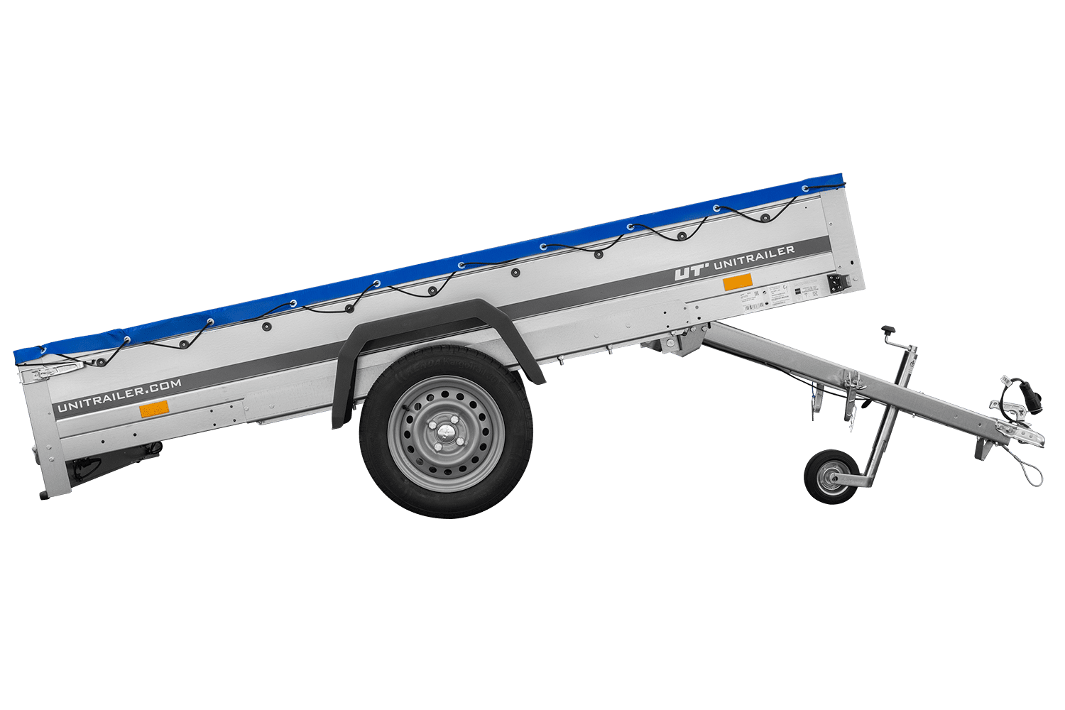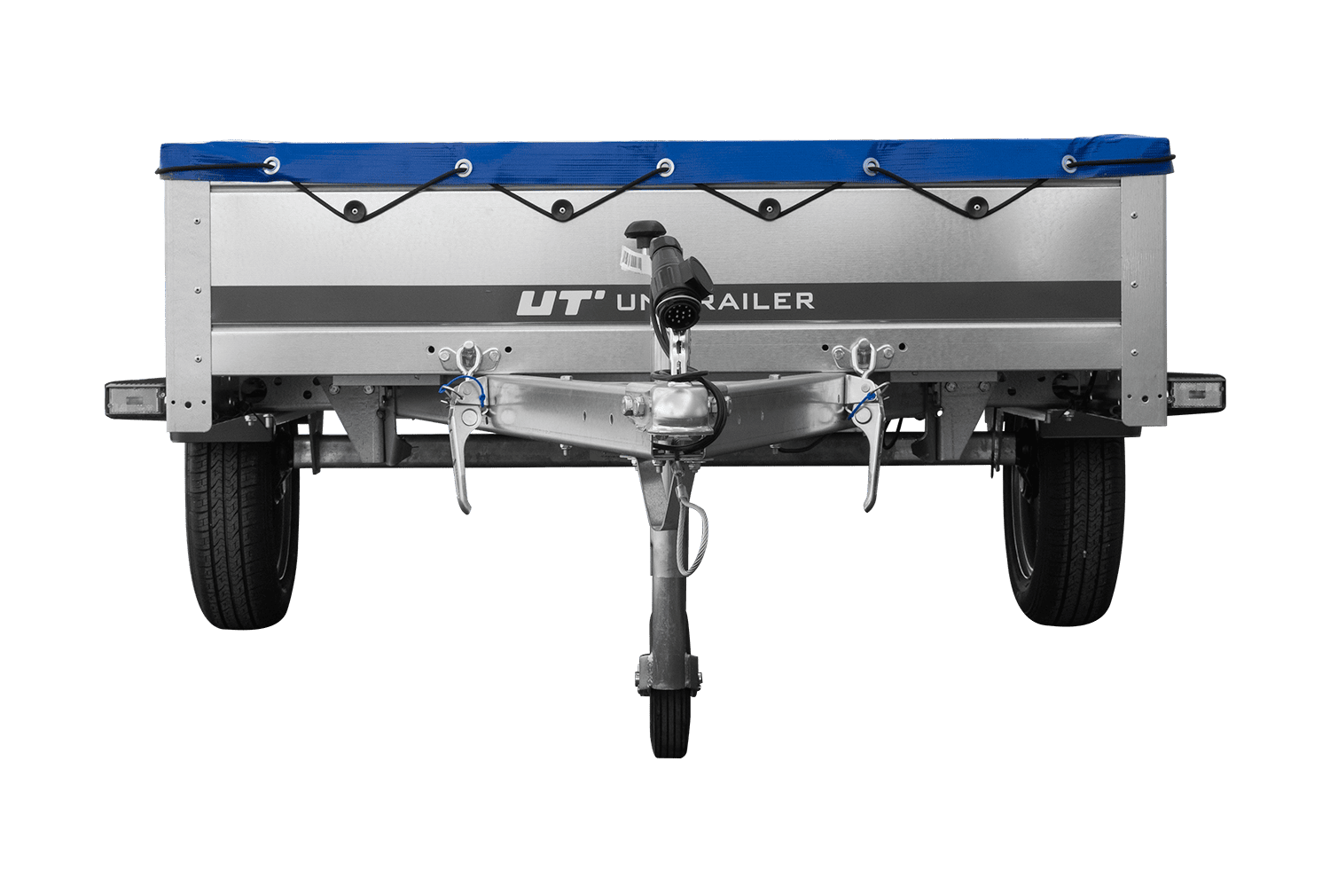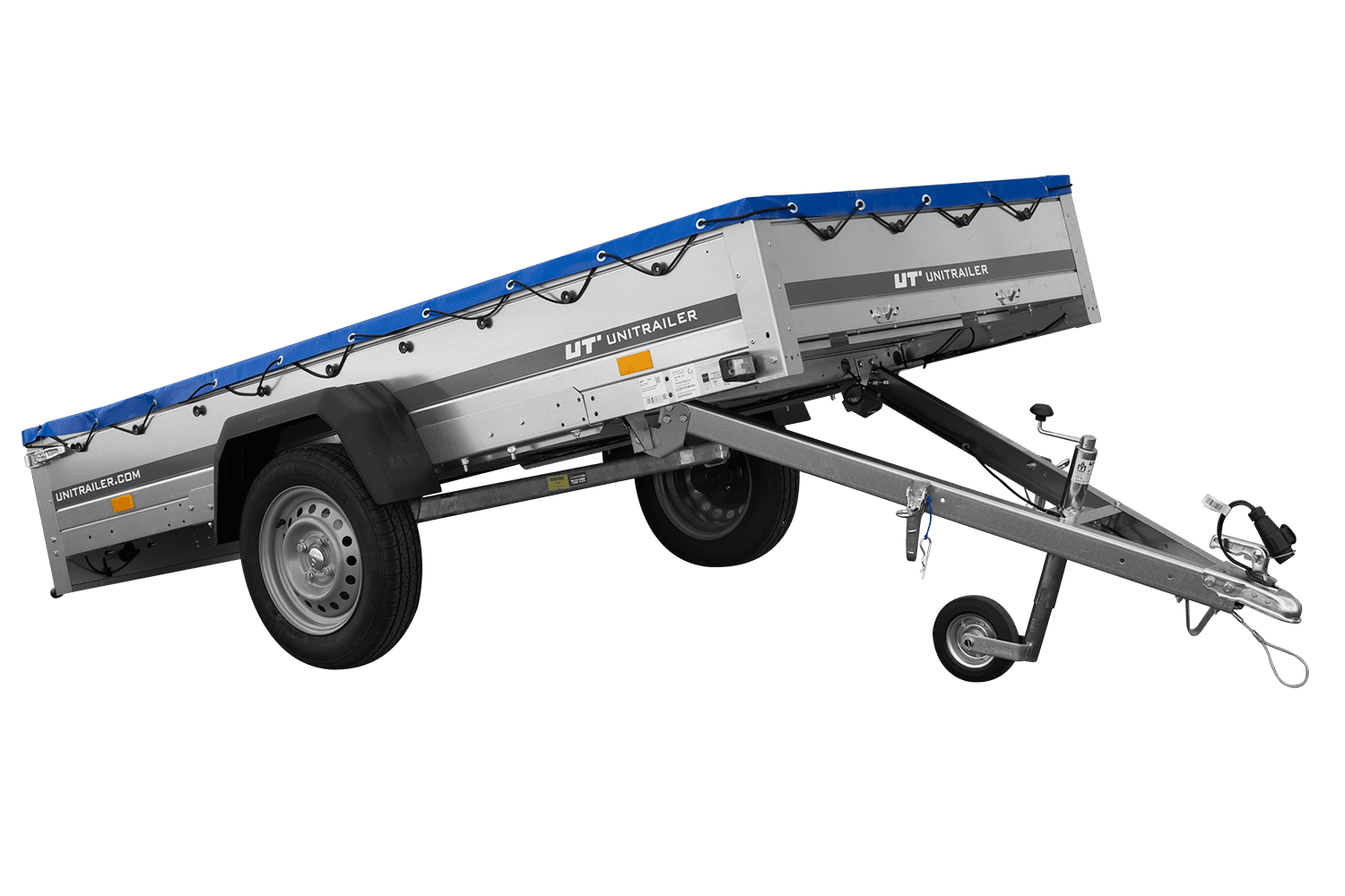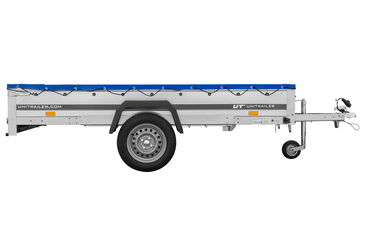 Enkelassige aanhanger 264x125 UNITRAILER GARDEN 264 KIPP met blauw dekzeil