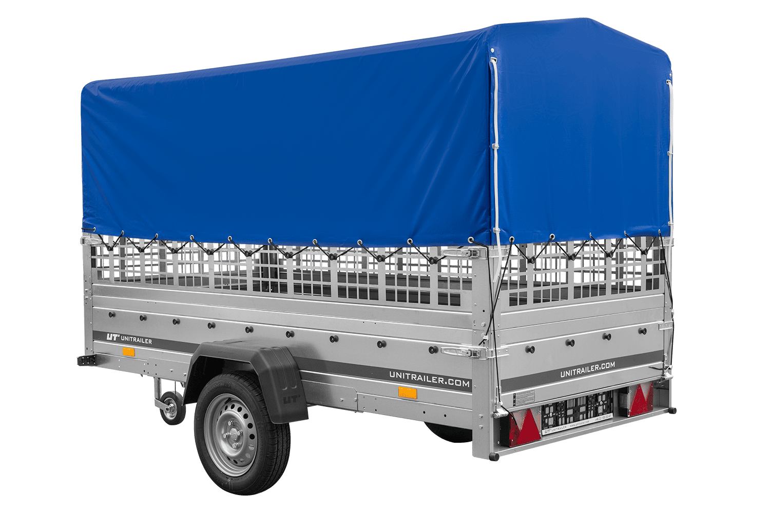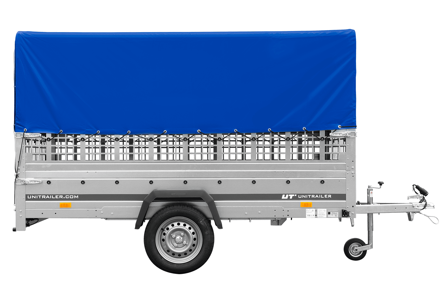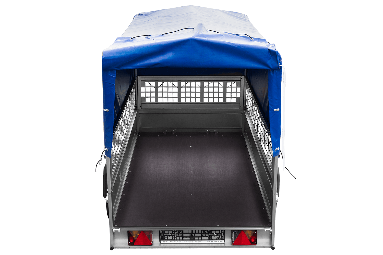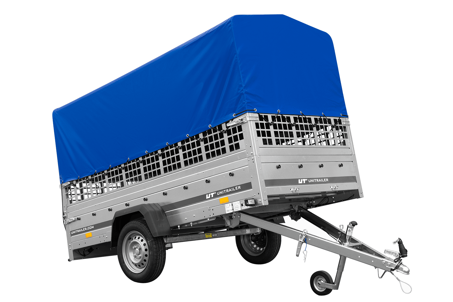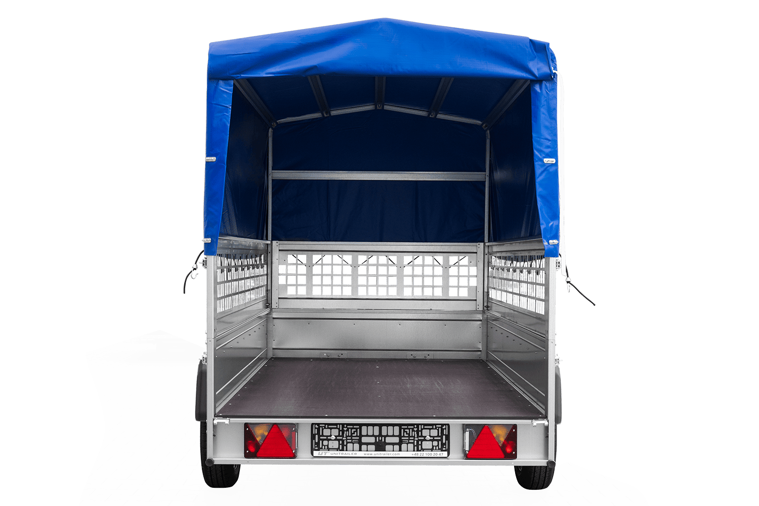 Lichte aanhangwagen 264x125 UNITRAILER GARDEN 264 KIPP met gaaswanden, H-800 frame en blauwe kap