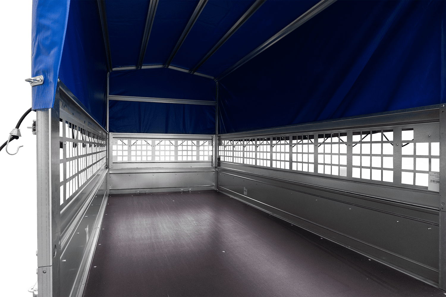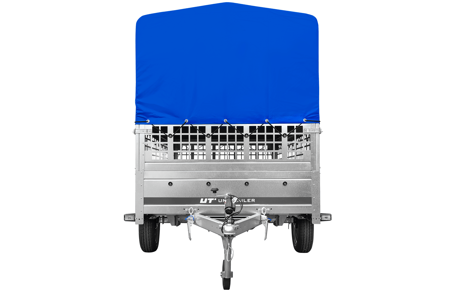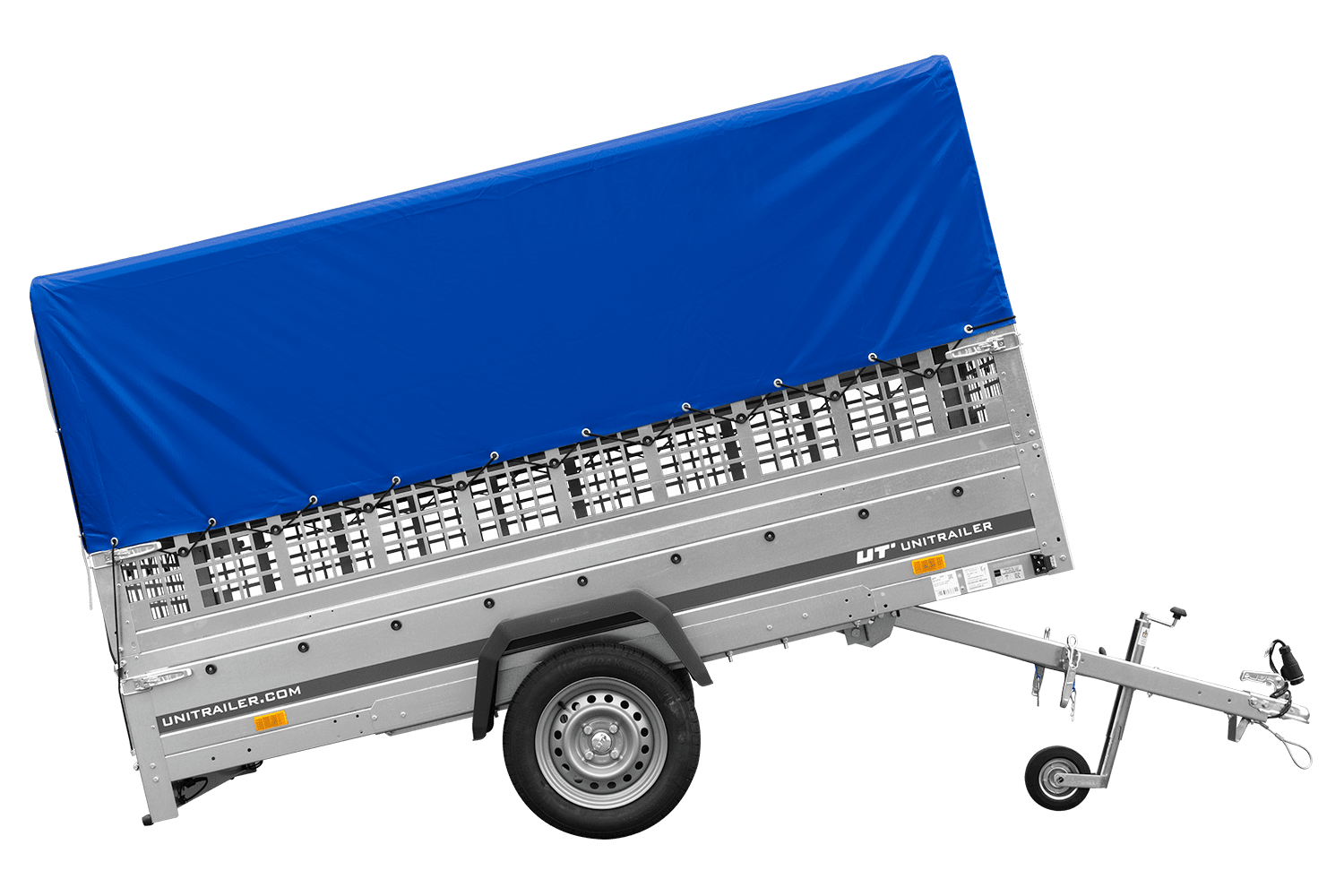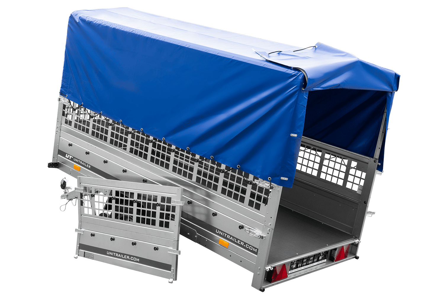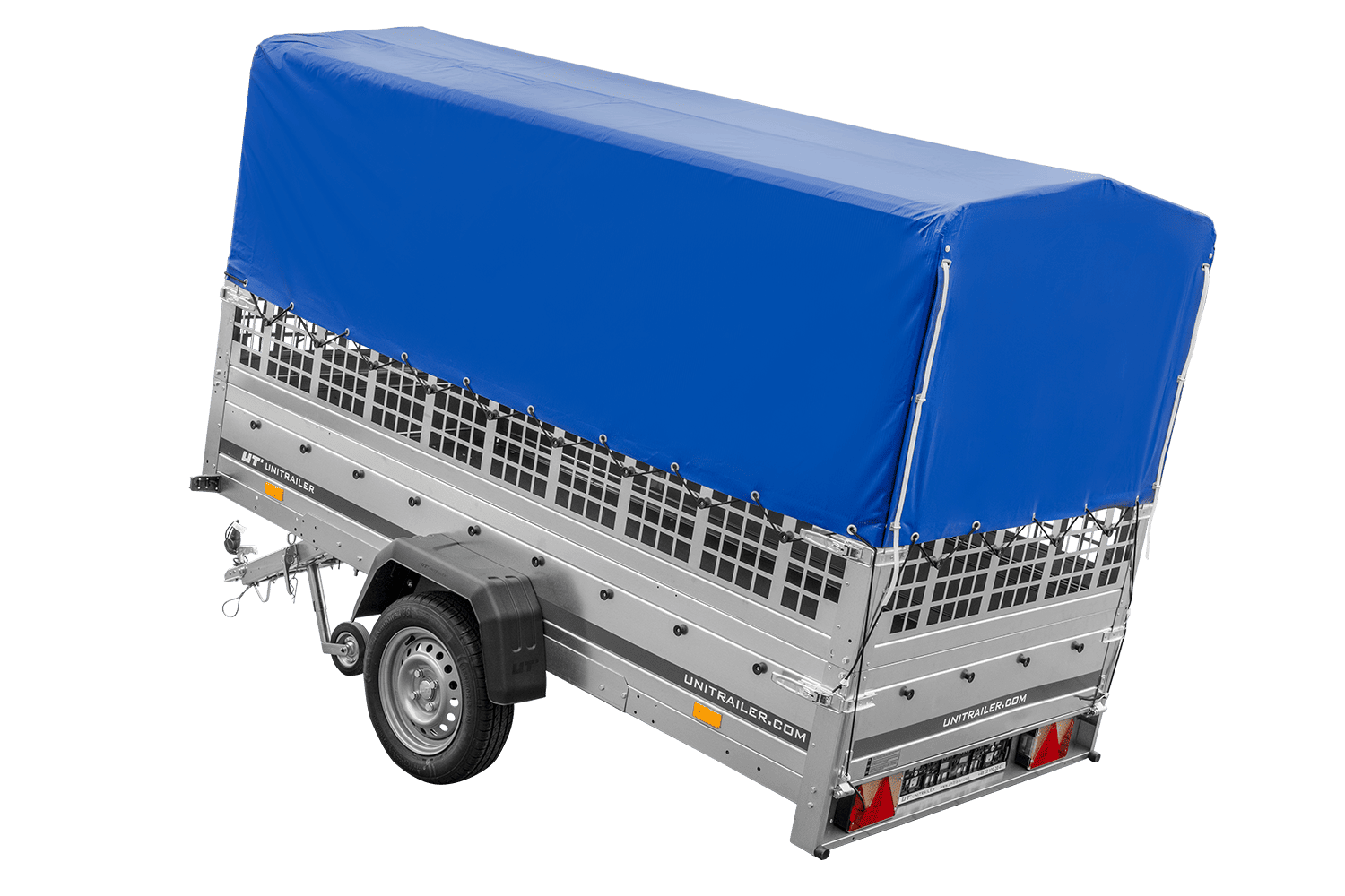 Lichte aanhangwagen 264x125 UNITRAILER GARDEN 264 KIPP met gaaswanden, H-800 frame en blauwe kap