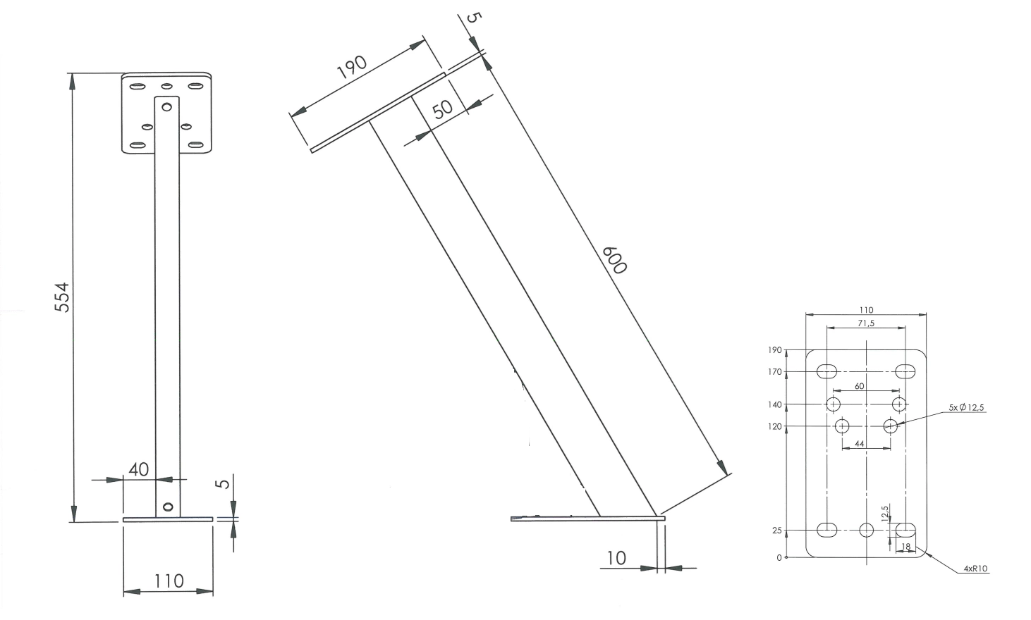 De beugel is 600 mm lang en 554 mm hoog en biedt een robuuste en duurzame basis voor de bevestiging van de lier, waardoor deze in een breed scala aan transporttoepassingen kan worden gebruikt.