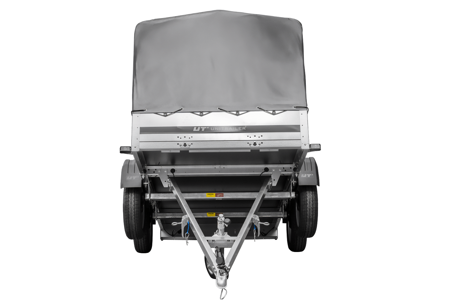 - Unitrailer Tuintrailer 264/2 KIPP tweeassige aanhanger met steunwiel, frame van 80 cm en speciaal grijs dekzeil.