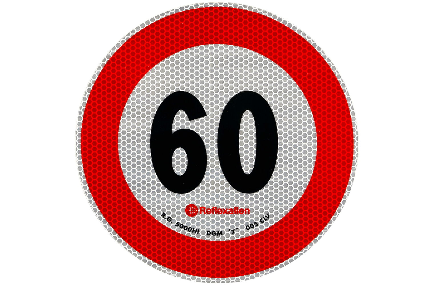 Reflecterende sticker LAMP snelheidslimiet 60 km/u bord B-33