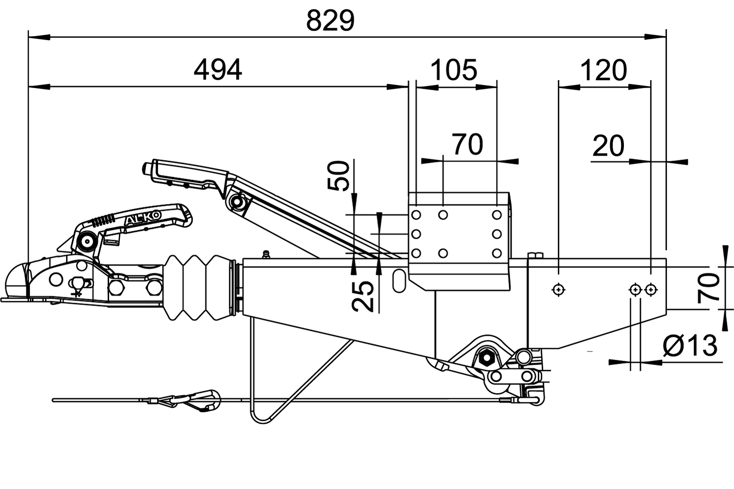 - De oploopinrichting/oplooprem 161 S van AL-KO is ontworpen voor aanhangwagens en takelwagens met een dissel met een vierkant profiel van 70 mm, met een totaalgewicht van 950 kg tot 1600 kg. Inclusief de AK 161 kogelkoppeling.