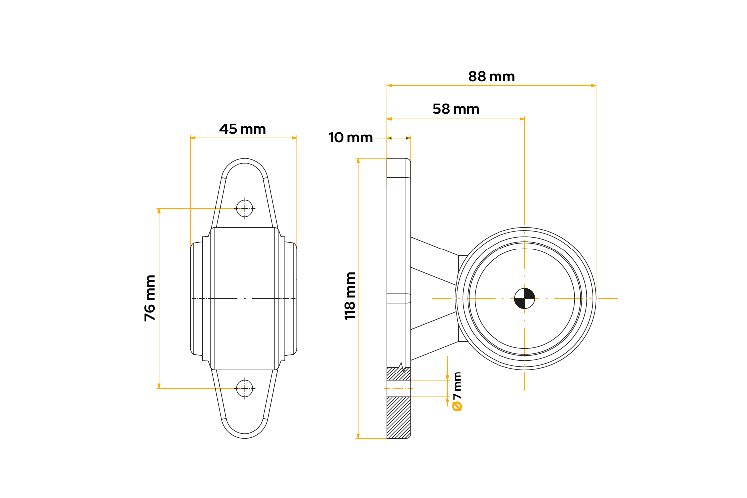 De FT-009 A LED markeringslamp van FRISTOM is ontworpen voor montage aan zowel de linker- als de rechterzijde van het voertuig en wordt gekenmerkt door de volgende afmetingen: breedte 118 mm, hoogte 88 mm, diepte 45 mm . Het is ontworpen om te werken binnen een spanning van 12-24 V en kan worden gebruikt in aanhangwagens, landbouwmachines, vrachtwagens en takelwagens, wat de universaliteit ervan benadrukt. Uitgerust met een korte, rechte rubberen arm voor montage en een 0,5 m lange platte kabel zorgt voor een eenvoudige en snelle installatie. Dankzij het gebruik van LED-technologie biedt de lamp hoge prestaties, duurzaamheid en energie-efficiëntie, waardoor de veiligheid in verschillende wegomstandigheden wordt gewaarborgd.