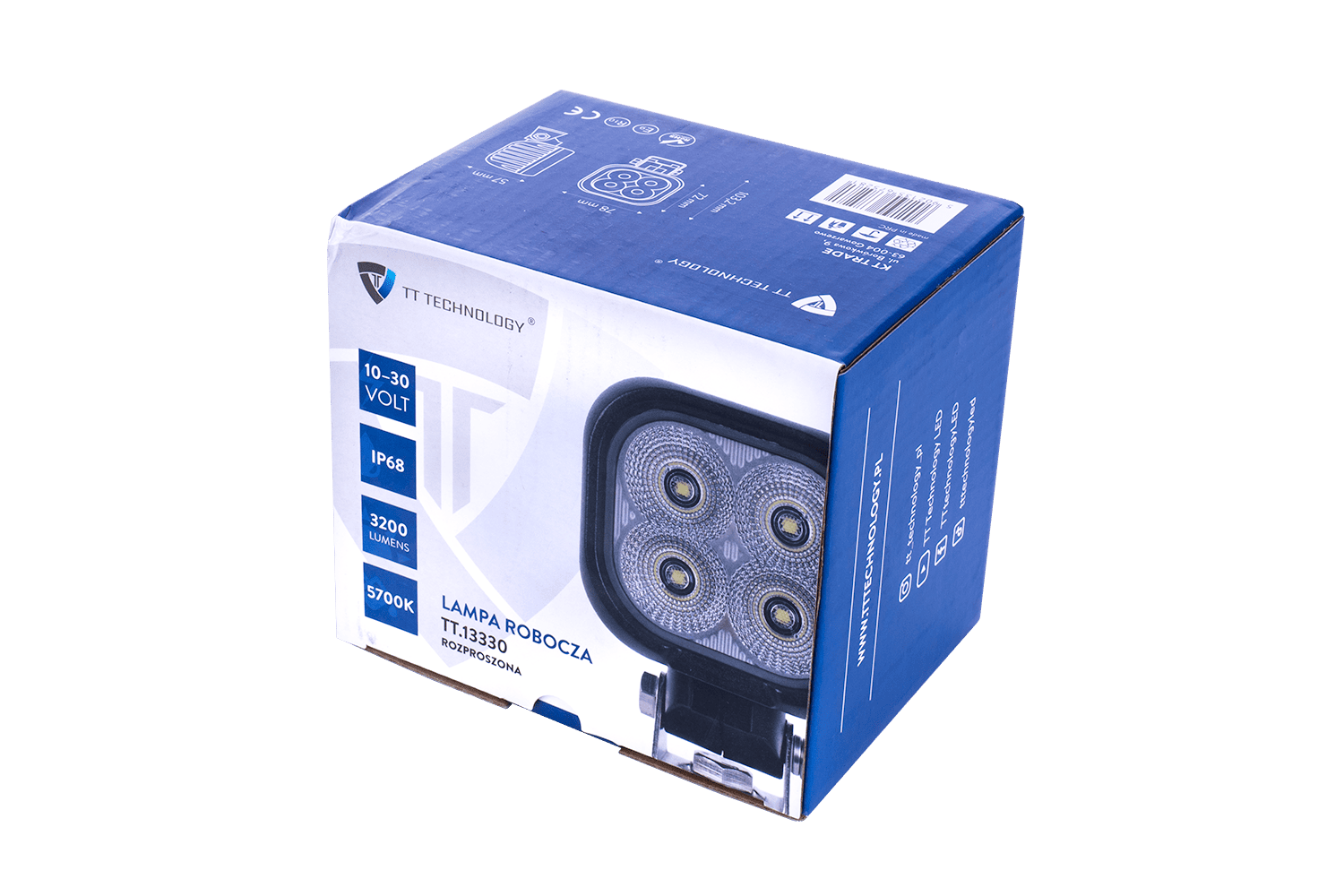 De TT.13330 werklamp van TT TECHNOLOGY is een universele LED- lichtbron, ontworpen voor werkzaamheden onder moeilijke omstandigheden. Ideaal voor bedrijfsvoertuigen, landbouw-, bouw- en terreinvoertuigen, maar ook voor op boten of als extra verlichting voor bussen en vrachtwagens. Het wordt gekenmerkt door een robuuste constructie met de afmetingen: breedte 78 mm, hoogte 103,2 mm, diepte 57 mm , evenals een voeding in het spanningsbereik van 10-30 V. Dankzij de 0,5 m lange kabel is een eenvoudige installatie en aansluiting mogelijk, zelfs op moeilijk bereikbare plaatsen. De lampbehuizing is gemaakt van duurzame materialen, waardoor deze bestand is tegen schokken en mechanische beschadigingen onder veeleisende werkomstandigheden.