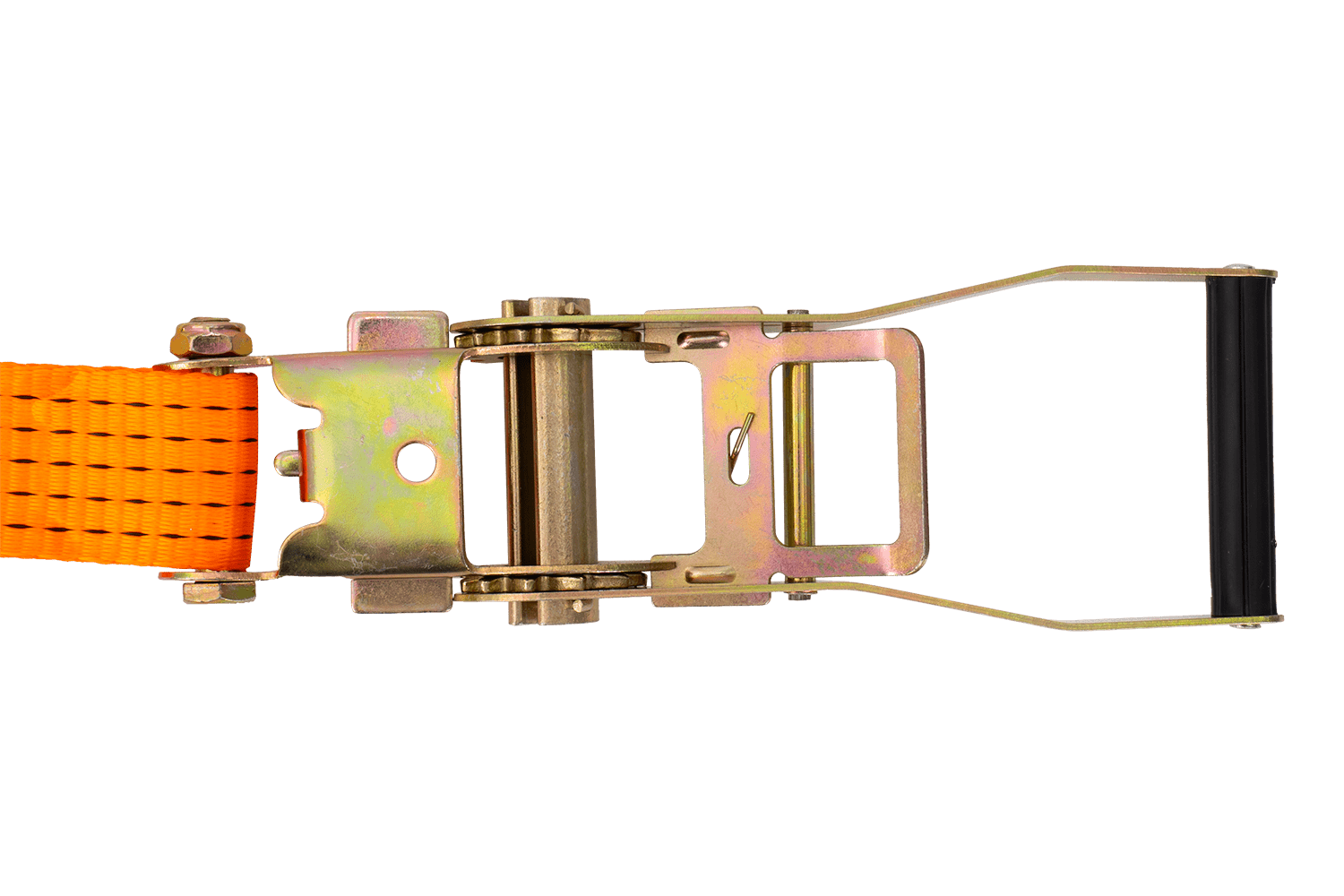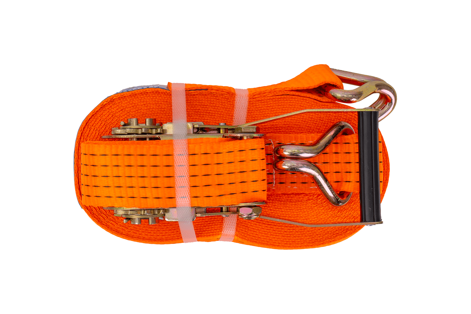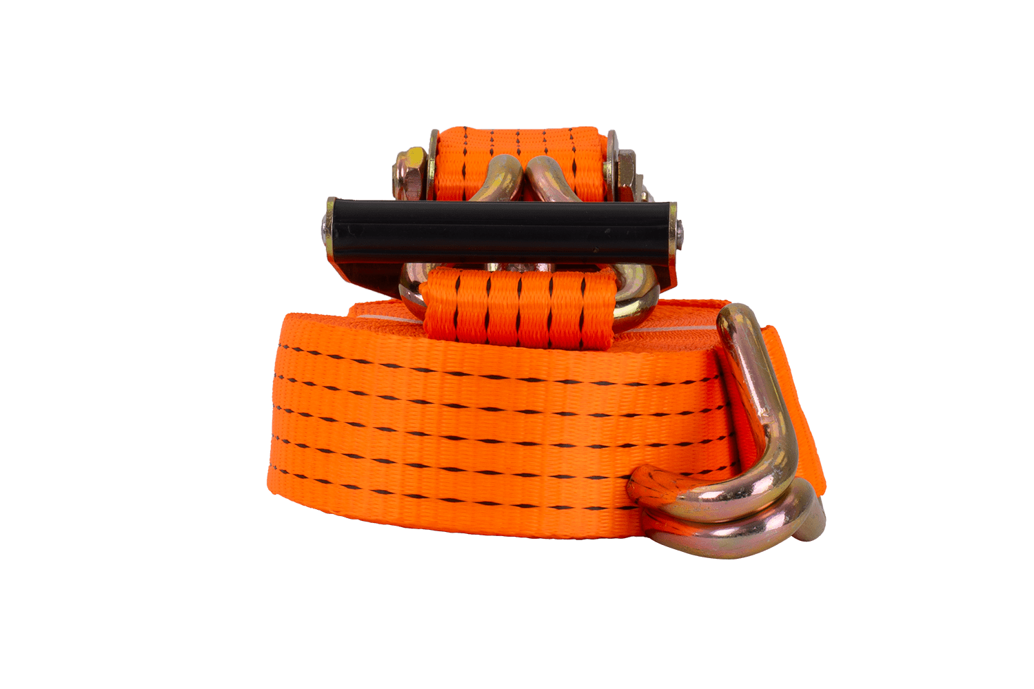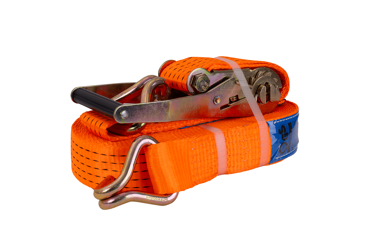 De oranje UNITRAILER ratelband bestaat uit twee delen: een korter deel met ratel en haak, en een langer deel met spanband en haak. De totale lengte van de spanband, inclusief spanband en gesp, is 15 meter , voldoende voor het vastzetten van grotere ladingen. De 50 mm brede spanband zorgt voor voldoende druk. De spanband heeft een robuuste spankracht tot 5 ton (5000 daN) , waardoor hij geschikt is voor het vastzetten van zwaardere ladingen.