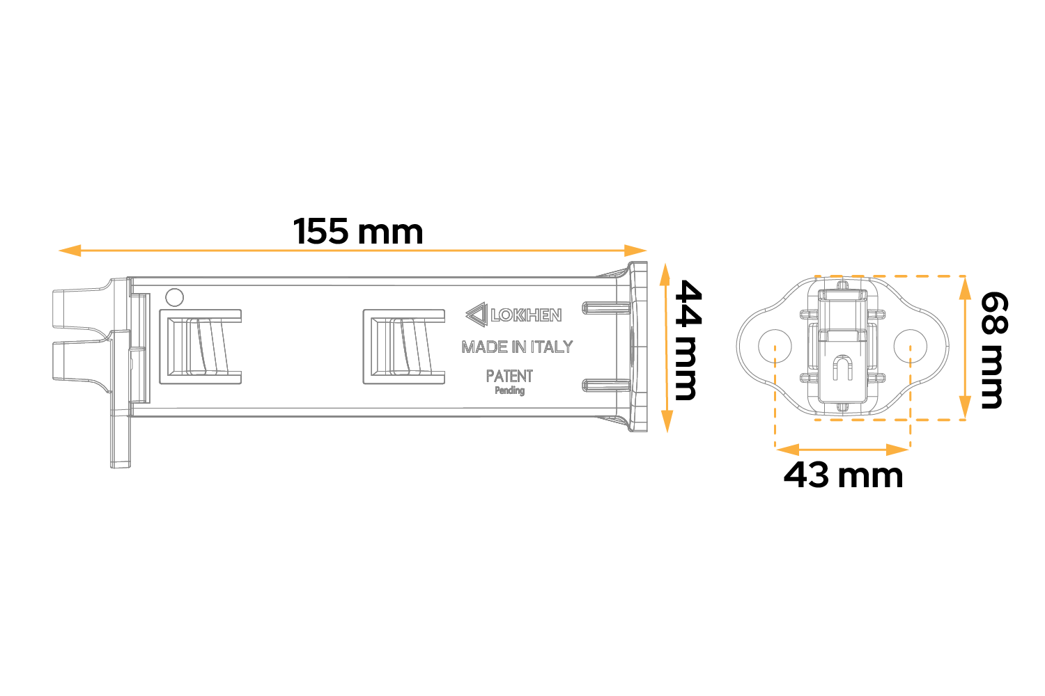 - Een houder voor het bevestigen van twee Origama 36 wiggen van LOKHEN, gemaakt van kunststof. De handgreep elimineert het risico dat de wig uit het voertuig glijdt of valt en zorgt ervoor dat de wig tijdens transport perfect in de handgreep wordt gehouden.