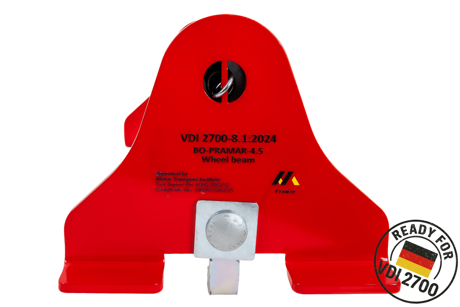 De PRAMAR Radstopper-blokkering is gecertificeerd volgens de VDI 2700-norm voor het vastzetten van voertuigen tot 4,5 T , wat de veiligheid en de kwaliteit van de afwerking bevestigt conform de Europese normen voor het vastzetten van ladingen. De VDI 2700-norm biedt richtlijnen voor het op de juiste wijze vastzetten van voertuigen op transportplatforms. Voldoen aan de eisen betekent dat het product is getest op sterkte, stabiliteit en functionaliteit onder weggebruikomstandigheden. Hierdoor kan de gebruiker erop vertrouwen dat de kluis voldoet aan de strenge eisen voor de beveiliging van vervoerde voertuigen – zowel bij commerciële als individuele toepassingen.