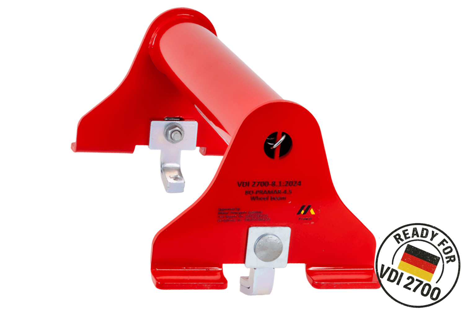 - PRAMAR Radstopper wielblokkering ontworpen voor het immobiliseren van de wielen van getransporteerde voertuigen op opleggers en transporttrailers. De afstand bedraagt 275–335 mm. Het VDI 2700-certificaat bevestigt de effectiviteit van het beveiligen van