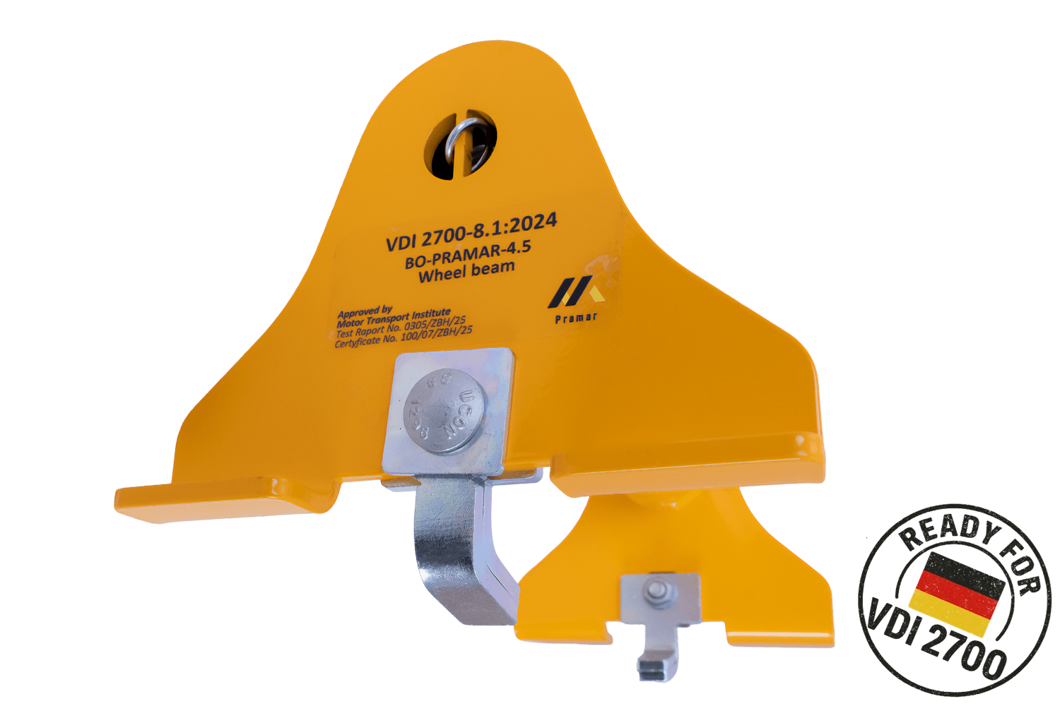 De PRAMAR Radstopper is gecertificeerd volgens de VDI 2700-norm voor het vastzetten van voertuigen tot 4,5 ton , wat de veiligheid en kwaliteit ervan bevestigt in overeenstemming met de Europese normen voor ladingzekering. De VDI 2700-norm biedt richtlijnen voor het correct vastzetten van voertuigen op transportplatforms. Voldoen aan de eisen betekent dat het product is getest op sterkte, stabiliteit en functionaliteit onder wegomstandigheden. Dit geeft gebruikers de zekerheid dat het slot voldoet aan de strenge eisen voor het vastzetten van getransporteerde voertuigen, zowel voor commerciële als residentiële toepassingen.