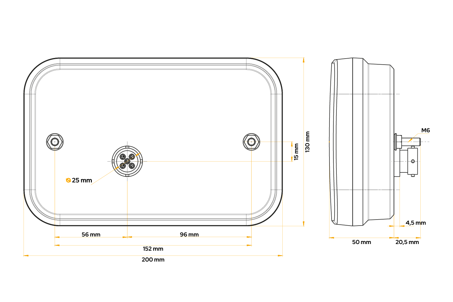 Het FT-270 LED CANBUS achterlicht van FRISTOM, ontworpen voor montage aan de rechterkant van het voertuig , heeft de volgende afmetingen: breedte 200 mm, hoogte 130 mm, diepte 50 mm . Het is ontworpen om te werken binnen een spanning van 12 V en kan worden gebruikt in lichte aanhangwagens, bussen en takelwagens, wat de universaliteit ervan benadrukt. Uitgerust met een 5-polige bajonetaansluiting , voor een eenvoudige en snelle montage. Dankzij de toepassing van LED-technologie biedt de lamp hoge prestaties, duurzaamheid en energie-efficiëntie, waardoor de veiligheid in verschillende wegomstandigheden wordt gegarandeerd. De constructie van de lamp is hermetisch, bestand tegen schokken en mechanische beschadigingen en is bovendien elektrisch beveiligd tegen omgekeerde polariteit, wat de betrouwbaarheid onder zware bedrijfsomstandigheden nog verder vergroot.