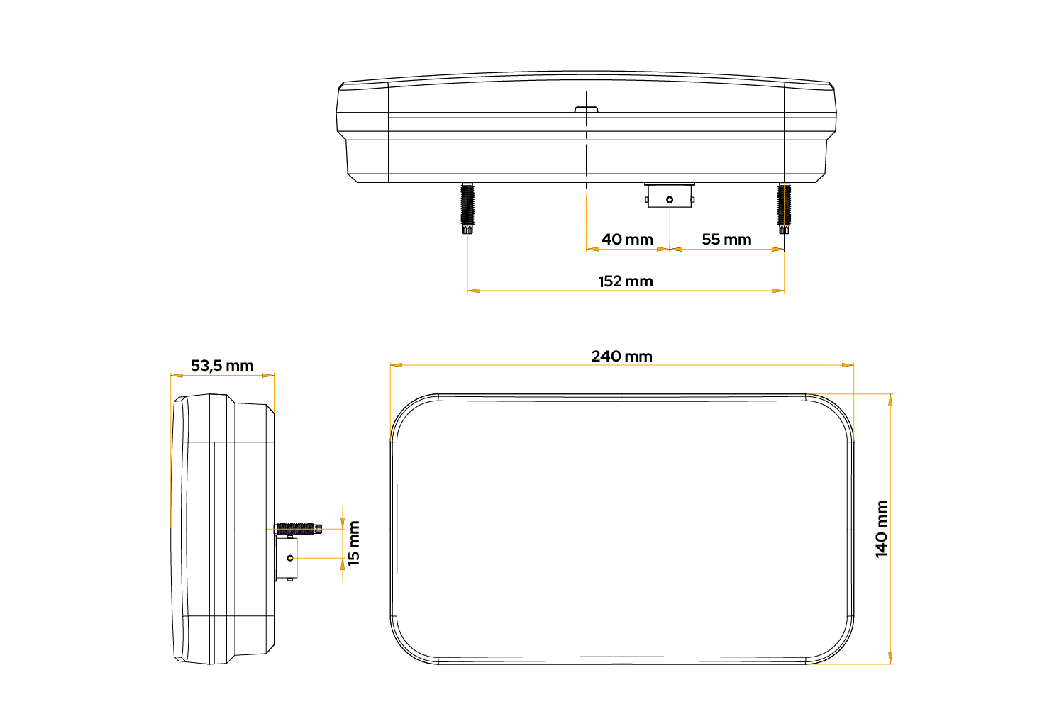 Het FT-370 LED CANBUS achterlicht van FRISTOM, ontworpen voor montage aan de rechterkant van het voertuig , heeft de volgende afmetingen: breedte 240 mm, hoogte 140 mm, diepte 53,5 mm . Het is ontworpen om te werken binnen een spanning van 12 V en kan worden gebruikt in lichte aanhangwagens, bussen en trailers, wat de universaliteit ervan benadrukt. Uitgerust met een 6-polige bajonetaansluiting , voor een eenvoudige en snelle montage. Dankzij de toepassing van LED-technologie biedt de lamp hoge prestaties, duurzaamheid en energie-efficiëntie, waardoor de veiligheid in verschillende wegomstandigheden wordt gegarandeerd. De constructie van de lamp is hermetisch, bestand tegen schokken en mechanische beschadigingen en is bovendien elektrisch beveiligd tegen omgekeerde polariteit, wat de betrouwbaarheid onder zware bedrijfsomstandigheden nog verder vergroot.