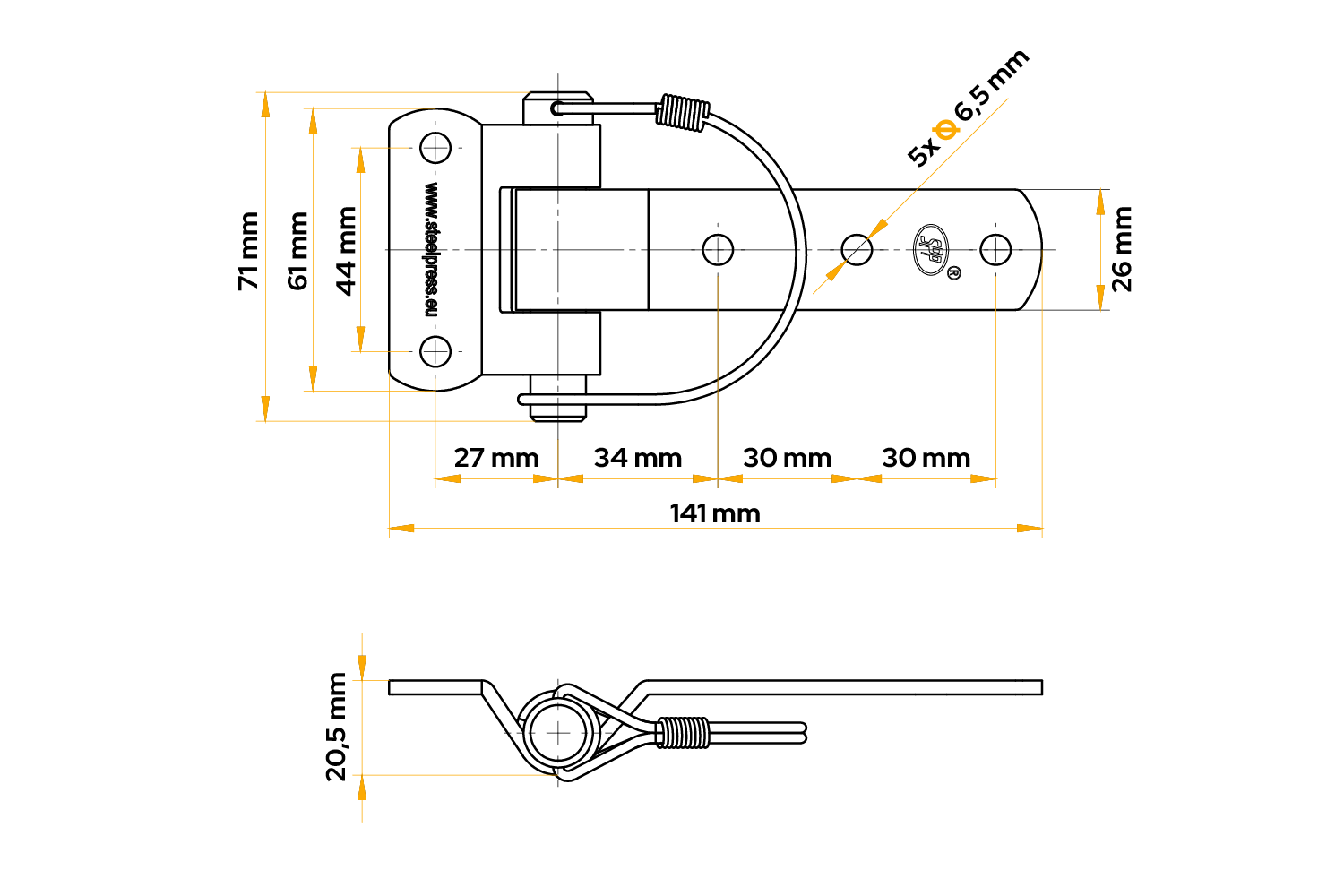 Het ZW-03.106 zijscharnier van STEELPRESS is een robuust en duurzaam onderdeel voor aanhangwagens, ontworpen voor de montage van zijpanelen op vracht-, landbouw- en bedrijfswagens. Het scharnier is 141 mm lang en 71 mm breed , waardoor het veelzijdig en eenvoudig aanpasbaar is aan verschillende carrosserieën. De nauwkeurige afwerking zorgt voor een stabiele scharnierwerking en vergemakkelijkt het openen en sluiten van de zijpanelen, waardoor de functionaliteit van de gehele aanhangwagenconstructie wordt verbeterd.