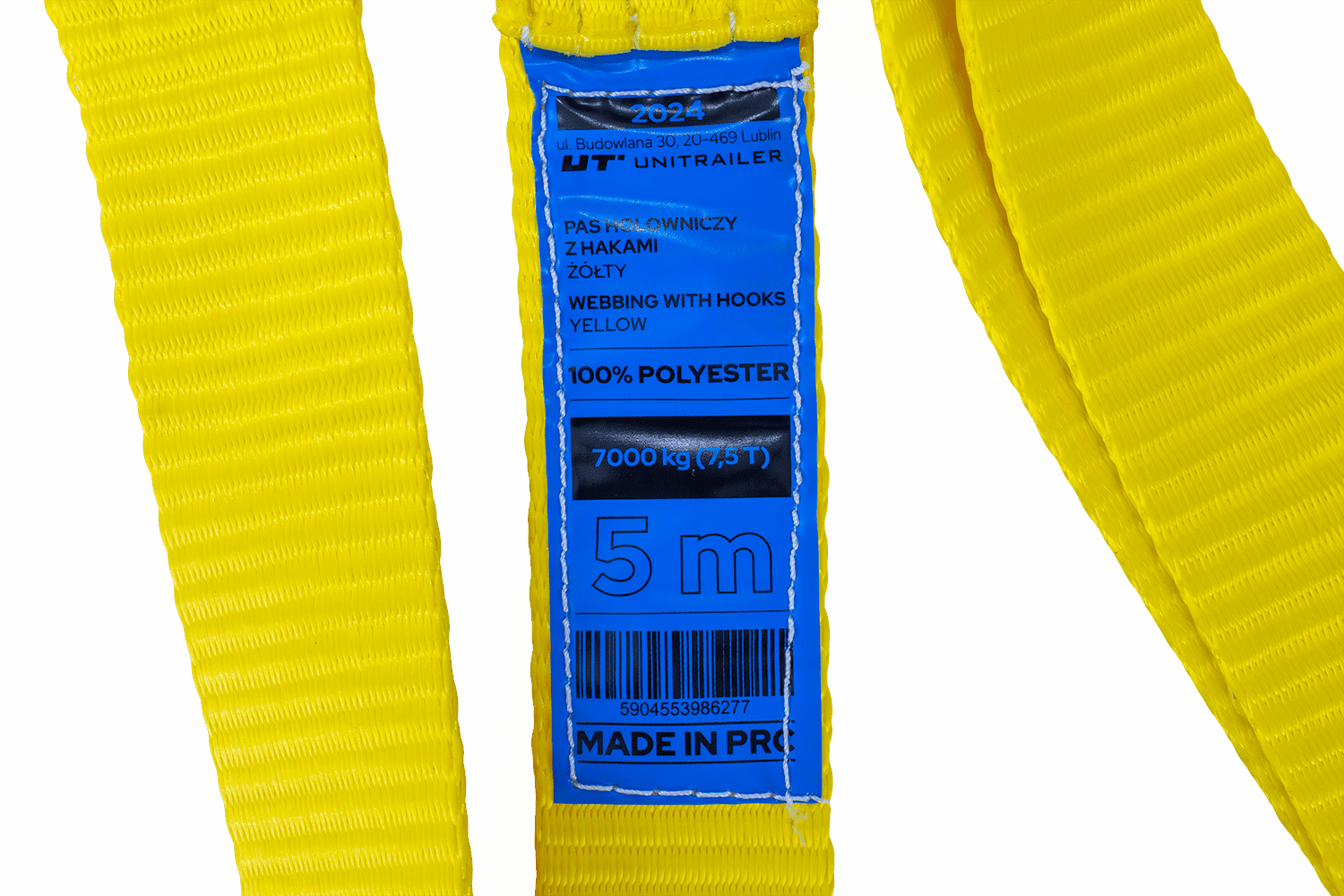 UNITRAILER hecht veel waarde aan de kwaliteit en veiligheid van haar producten. Daarom is de sleepband voorzien van duurzame, corrosiebestendige stalen haken . Duidelijke markeringen op de tape en een informatielabel in het Pools en Engels vergemakkelijken de identificatie van technische parameters. Dit model is een praktisch en onmisbaar stuk uitrusting voor elke bestuurder. Het verhoogt de veiligheid en zorgt ervoor dat u beter voorbereid bent op onverwachte situaties op de weg.