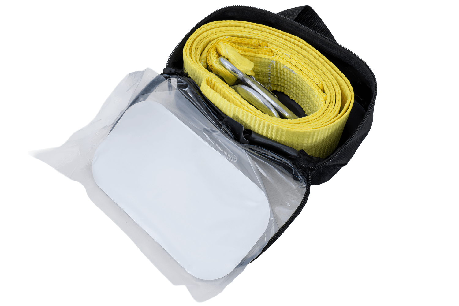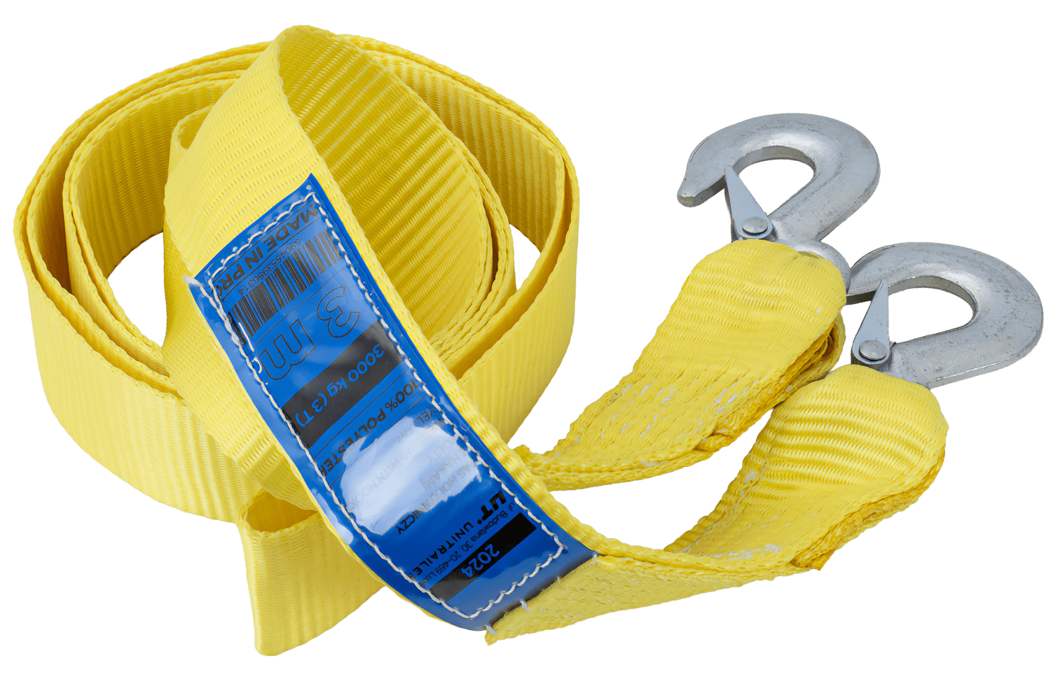 De gele UNITRAILER sleepband met haken is een betrouwbare accessoire voor het in noodgevallen slepen van personenauto's , bestelwagens en lichte machines. De band is gemaakt van duurzaam synthetisch bandmateriaal , 3 meter lang en 50 mm breed , wat zorgt voor voldoende stevigheid. De kabel is aan beide zijden voorzien van stevige metalen veiligheidshaken . Het maximale trekvermogen bedraagt 3 ton (3000 kg) , waarmee u de meeste standaardvoertuigen veilig en effectief kunt slepen.