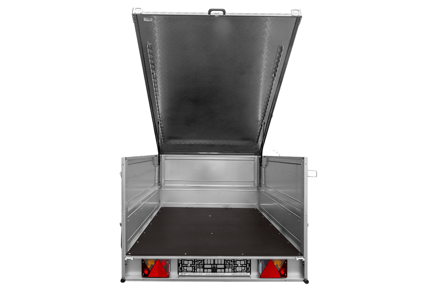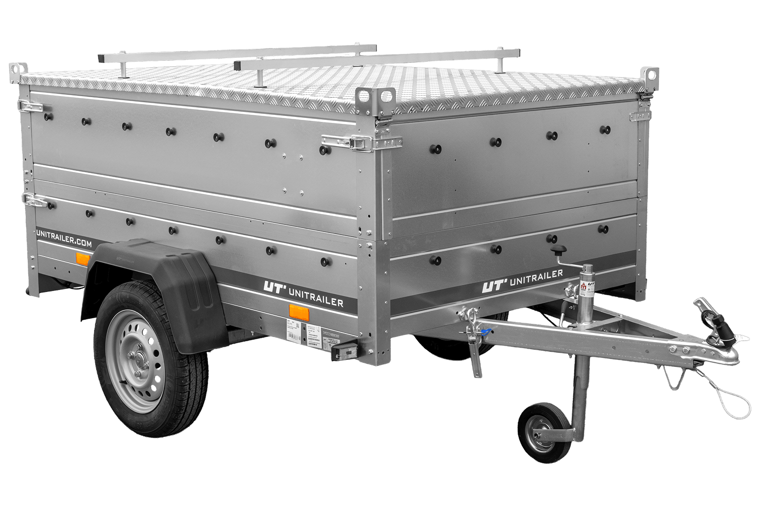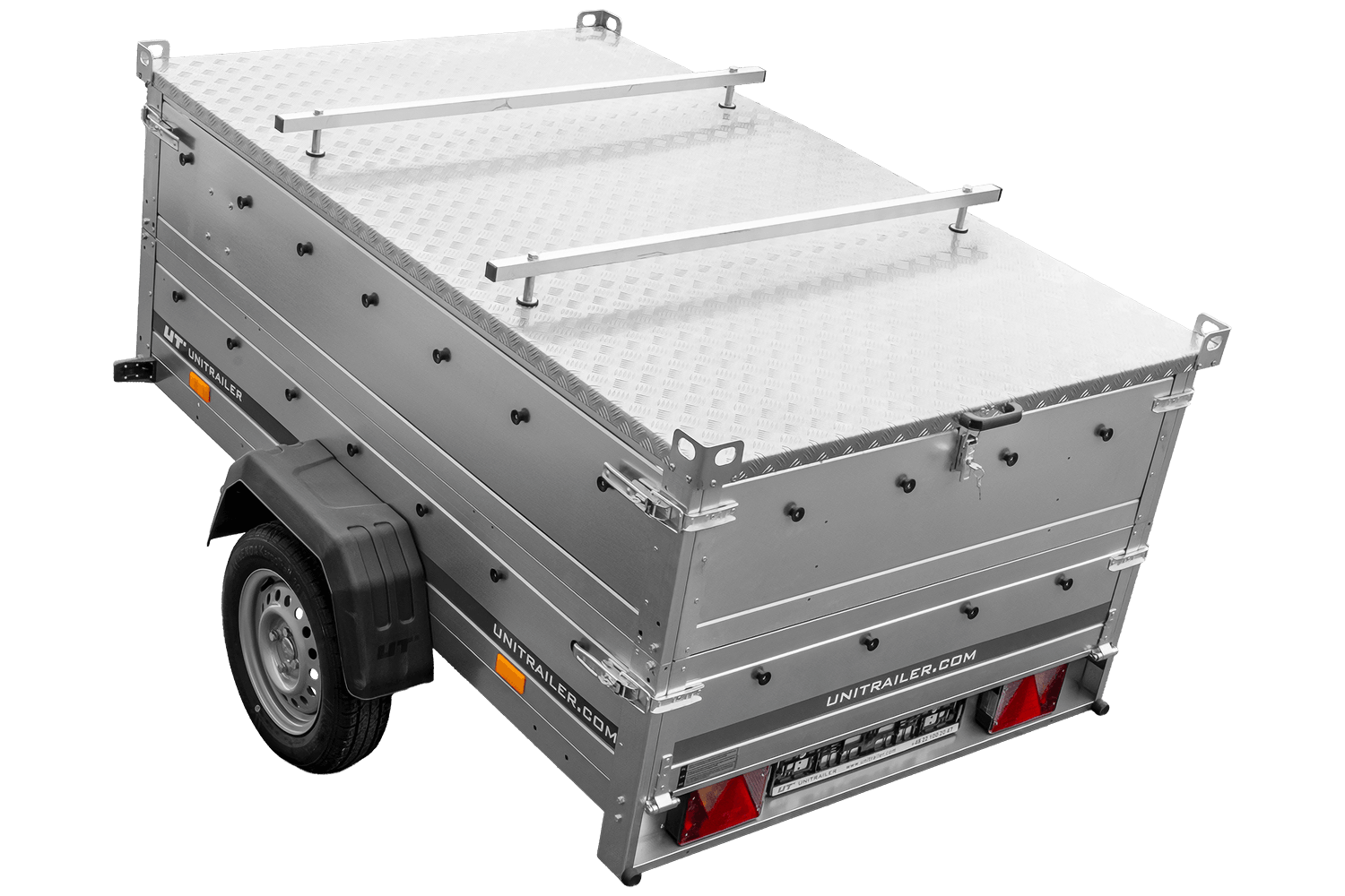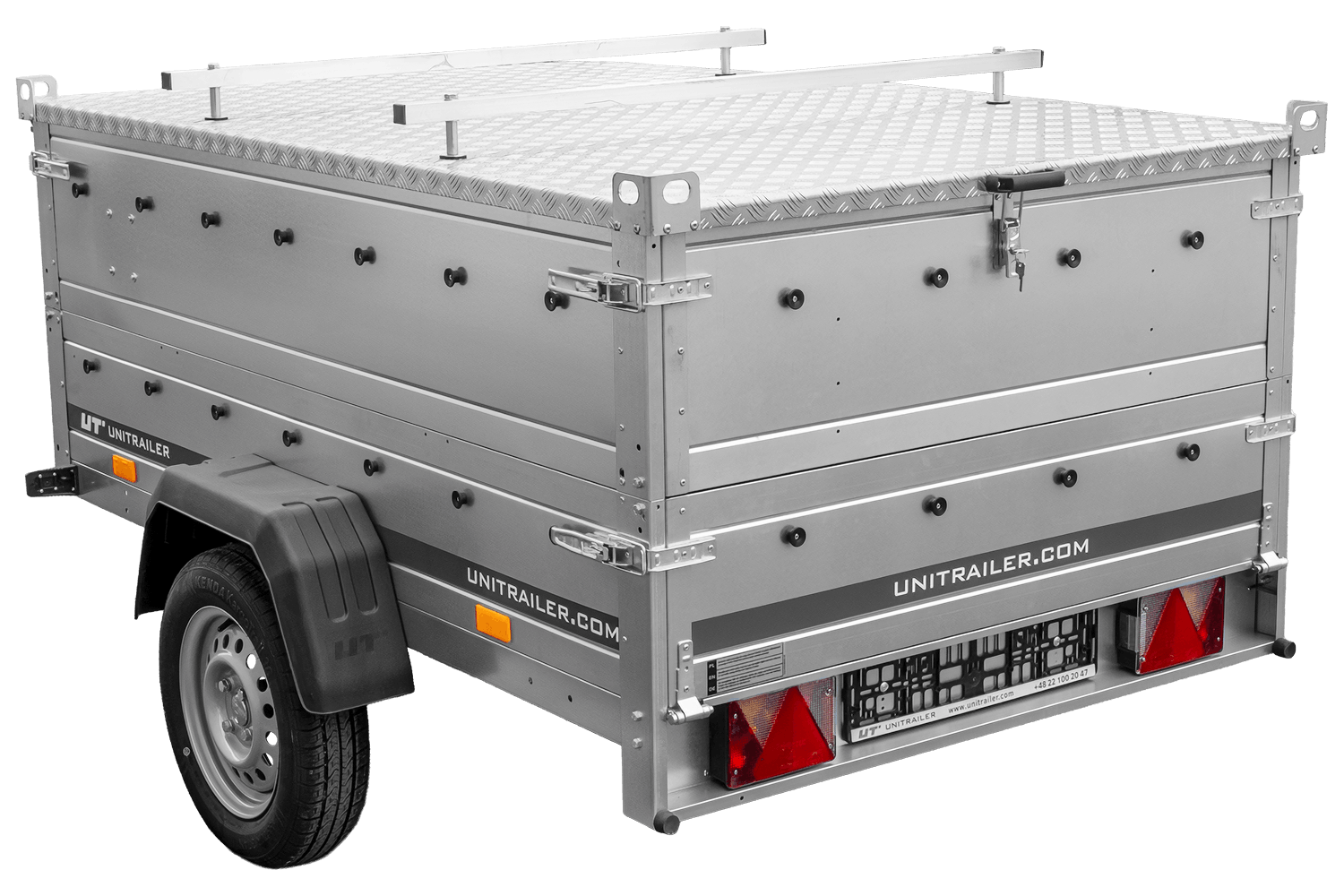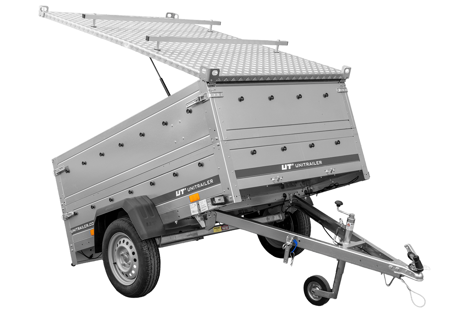 De ALU-afdekking voor de UNITRAILER GARDEN TRAILER 201 KIPP- aanhanger is gemaakt van lichtgewicht en duurzaam aluminium. De constructie is aan de zijkanten extra verstevigd, wat zorgt voor voldoende stijfheid ondanks de grote afmetingen. Het lage gewicht van de afdekking (slechts 50,03 kg) vermindert het laadvermogen van de aanhanger niet. Een handige eigenschap zijn de bovenste rails, waarop een dakdrager of fietsendrager gemonteerd kan worden , waardoor er ruimte is voor het vervoeren van diverse spullen.