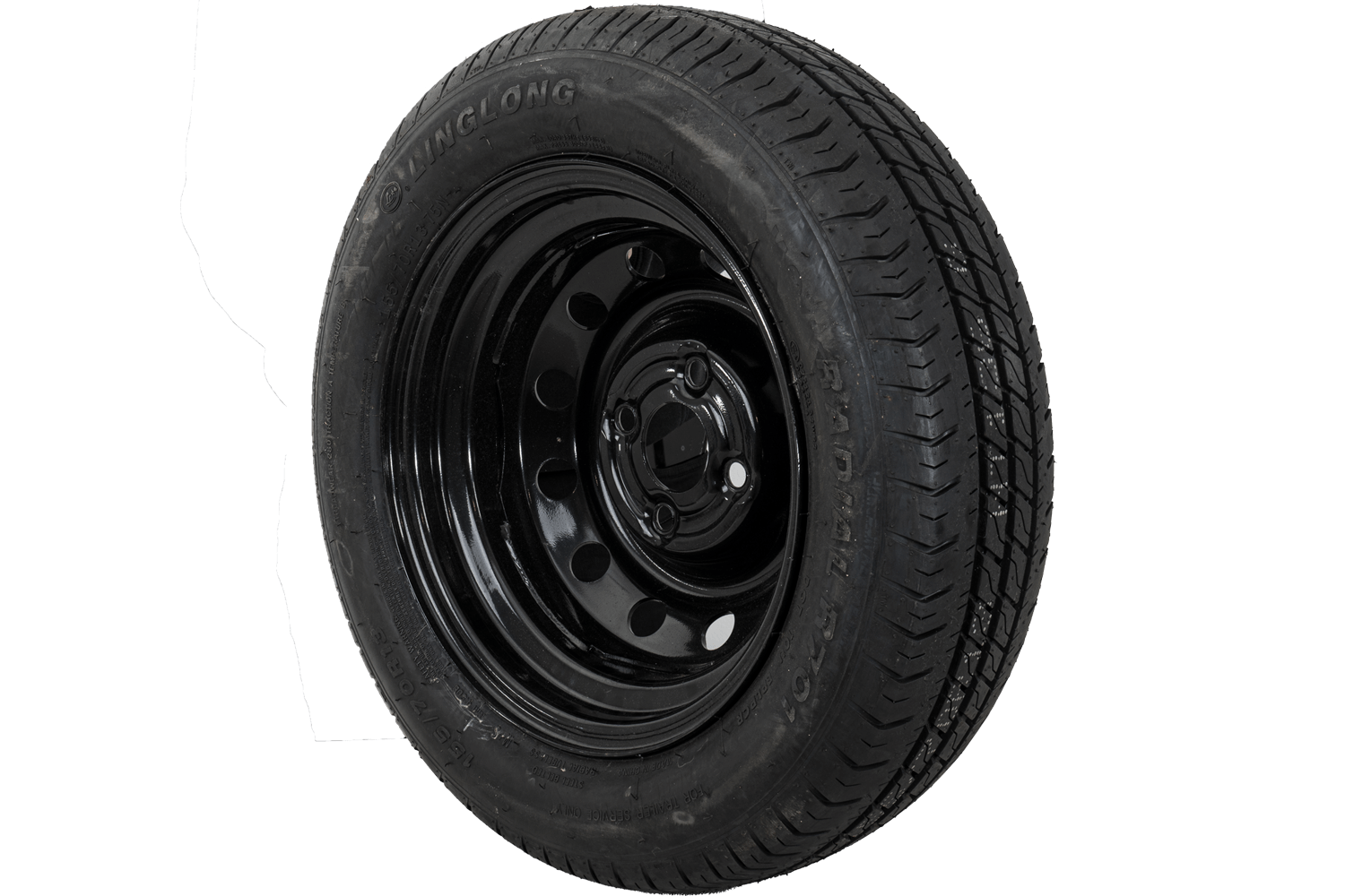 • OUTLET Wiel ontworpen voor lichte aanhangwagens. LINGLONG 155/70 R13-band zorgt voor veiligheid en stabiliteit tijdens het rijden. UNITRAILER 4Jx13"H2 4X100 ET:30 stalen velg in zwart. Maximaal wieldraagvermogen 387 kg.