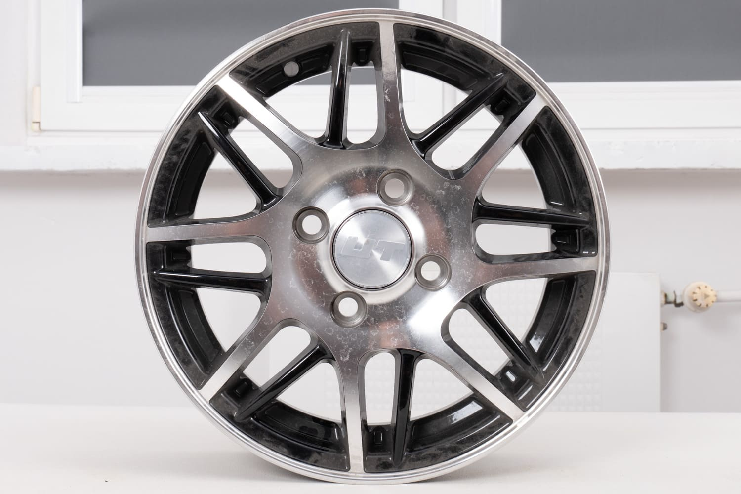 Outlet product - de velg heeft beschadigingen in verschillende mate en locaties, zoals lakschade, verkleuring, krassen, kleine roestvlekjes of deuken.