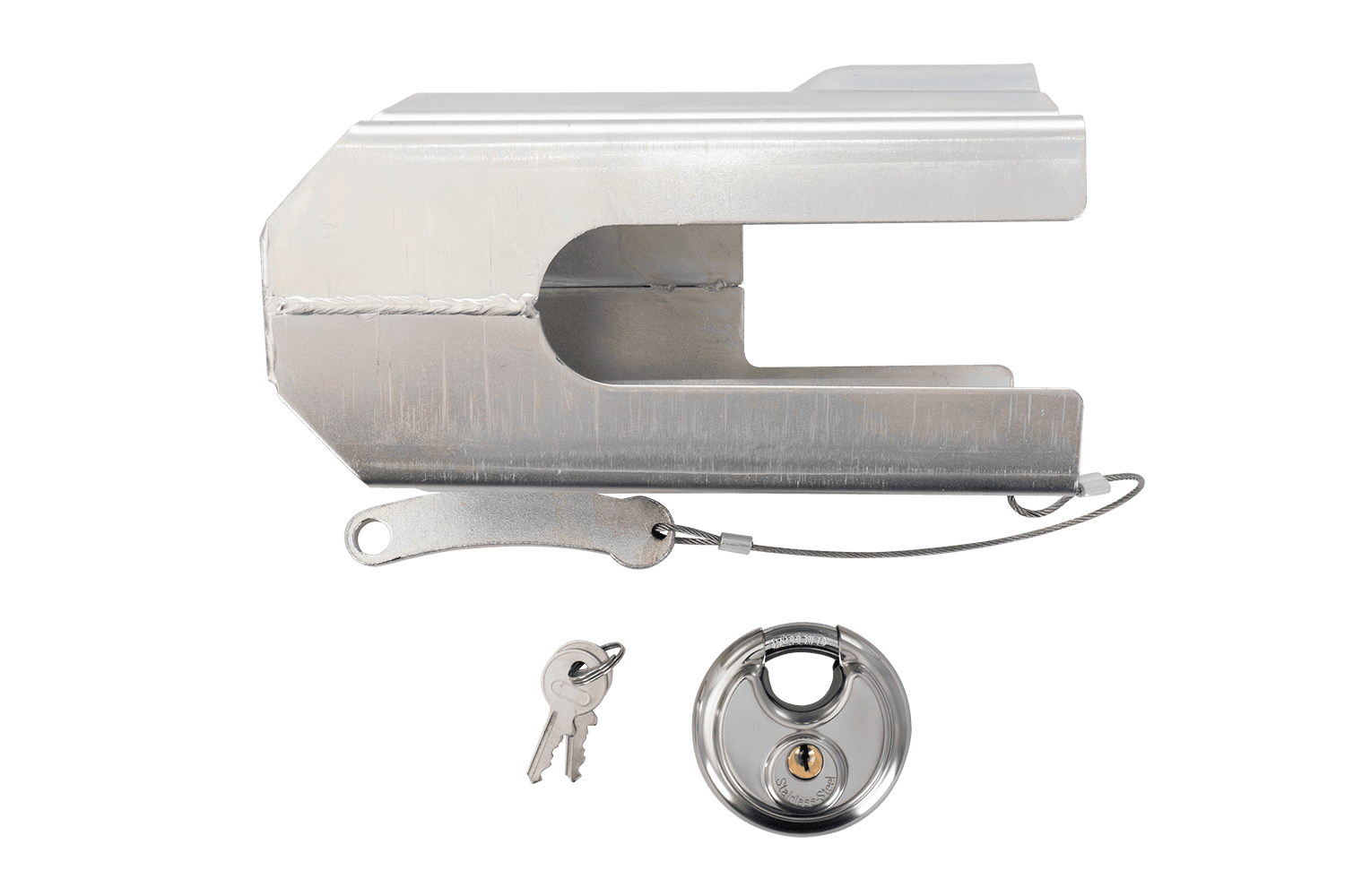 Het is gemaakt van duurzaam gegalvaniseerd staal en is bestand tegen weersomstandigheden, corrosie en mechanische schade. Een eenvoudig en effectief vergrendelingsmechanisme voorkomt dat de koppeling aan de trekhaak wordt bevestigd, waardoor het onmogelijk wordt om de aanhangwagen door onbevoegden weg te slepen.