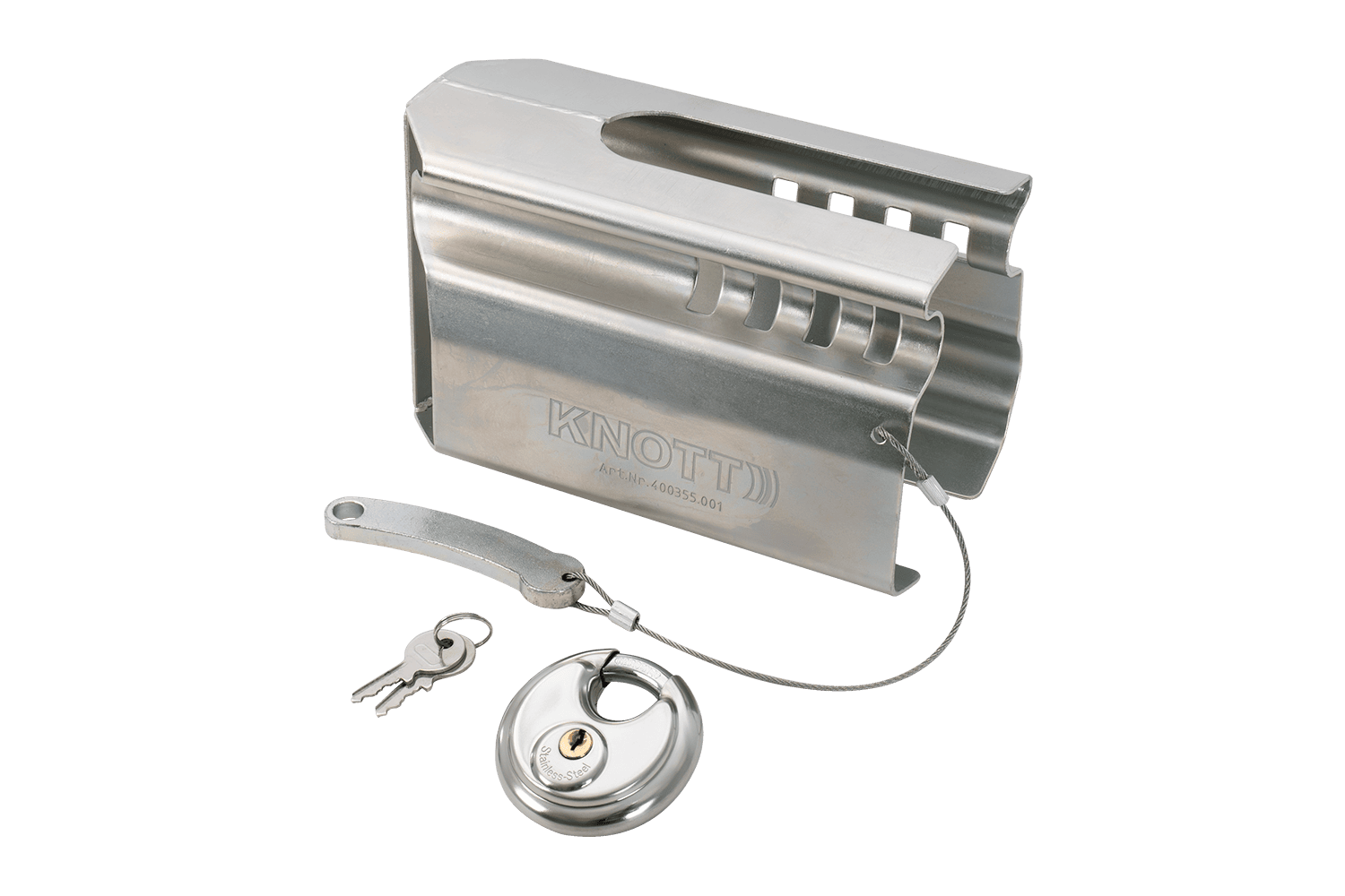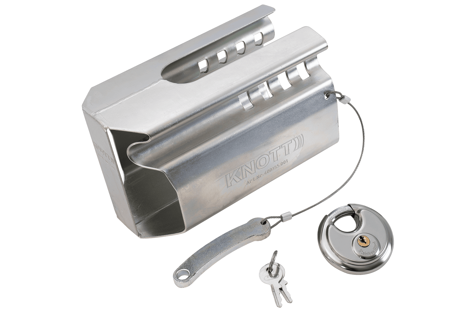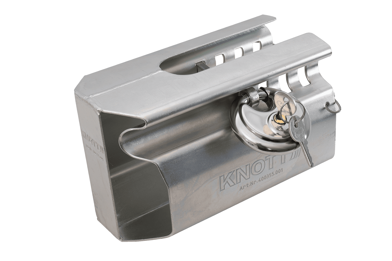 • Het universele antidiefstalslot KNOTT is een solide mechanische beveiliging, ontworpen voor alle standaard kogelkoppelingen. Het beschermt de aanhanger effectief tegen onbevoegd aankoppelen en diefstal. Ideaal voor parkeren onder alle omstandigheden.