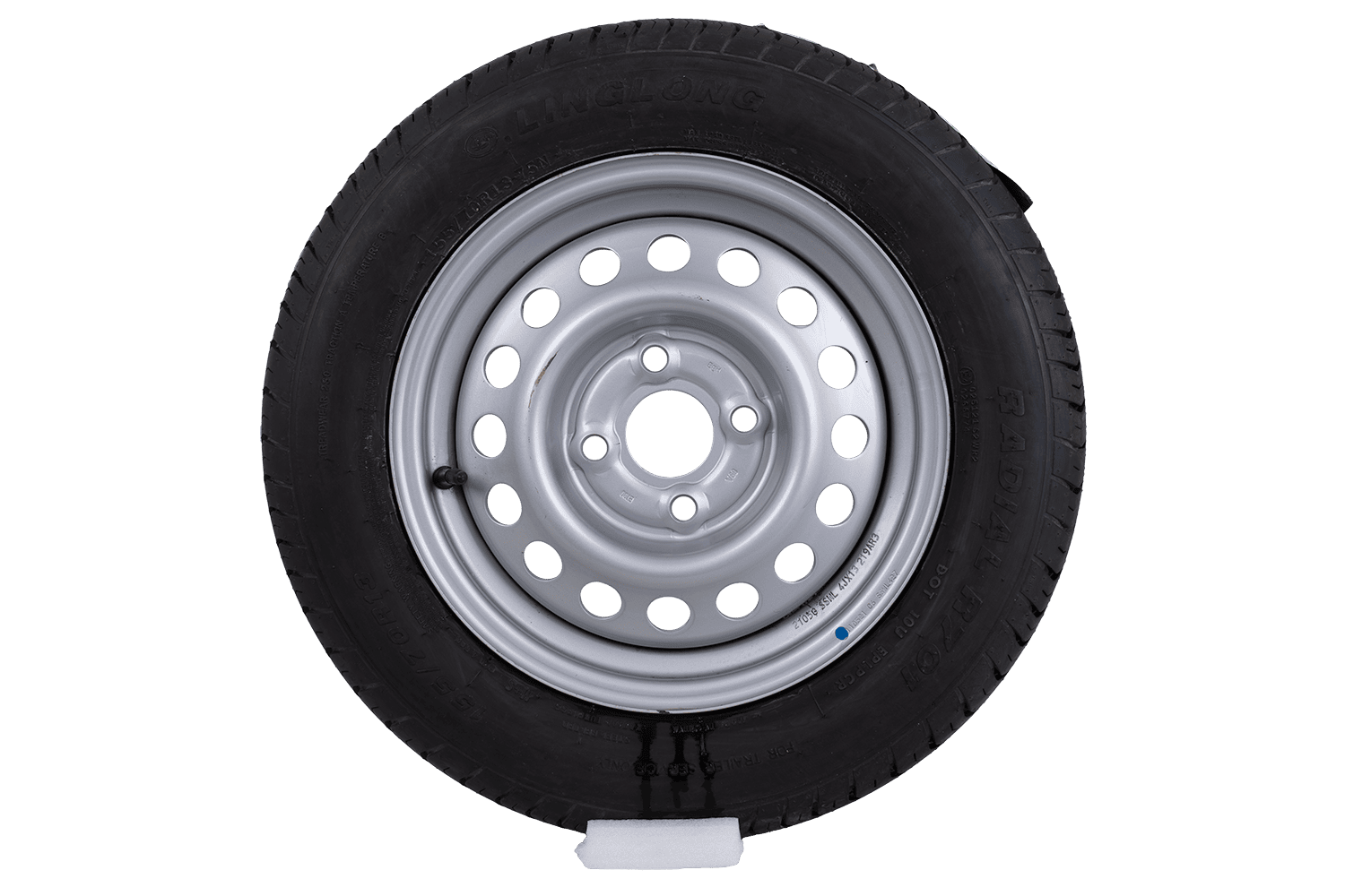 • OUTLET Wiel ontworpen voor lichte aanhangwagens. LINGLONG 155/70 R13-band zorgt voor veiligheid en stabiliteit tijdens het rijden. UNITRAILER 4Jx13" stalen velg 4X100 ET:30. Het maximale draagvermogen van de wielen is 387 kg.
