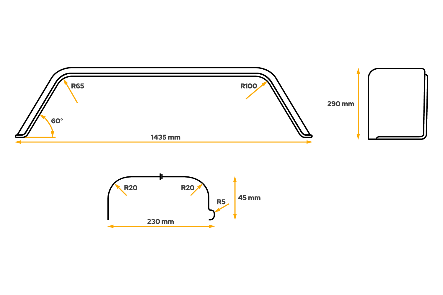 Het CHORUS tandem spatbord ontworpen voor 13 inch wielen, is een betrouwbaar onderdeel van de uitrusting voor tweeassige aanhangwagens . De afmetingen zijn 1435 mm lang, 230 mm breed en 290 mm hoog . Het spatbord heeft geen standaard bevestigingsgaten, die op de fabriek zijn gemaakt, waardoor de gebruiker de bevestigingsgaten naar eigen keuze kan aanpassen aan een specifiek voertuig .
