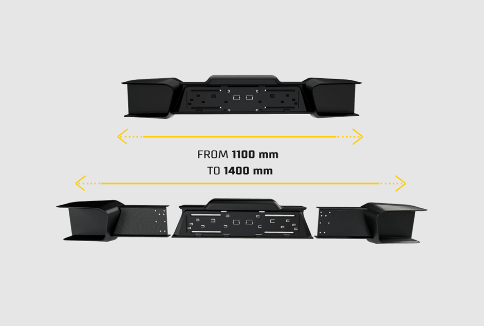 - GALASSY SMALL verlichtingsbord van LOKHEN, verstelbare lengte 1100-1400 mm. Kentekenplaathouder met kentekenverlichting en ruimte voor achterlichten. Ideaal voor aanhangers, fietsendragers en aanhangwagens.