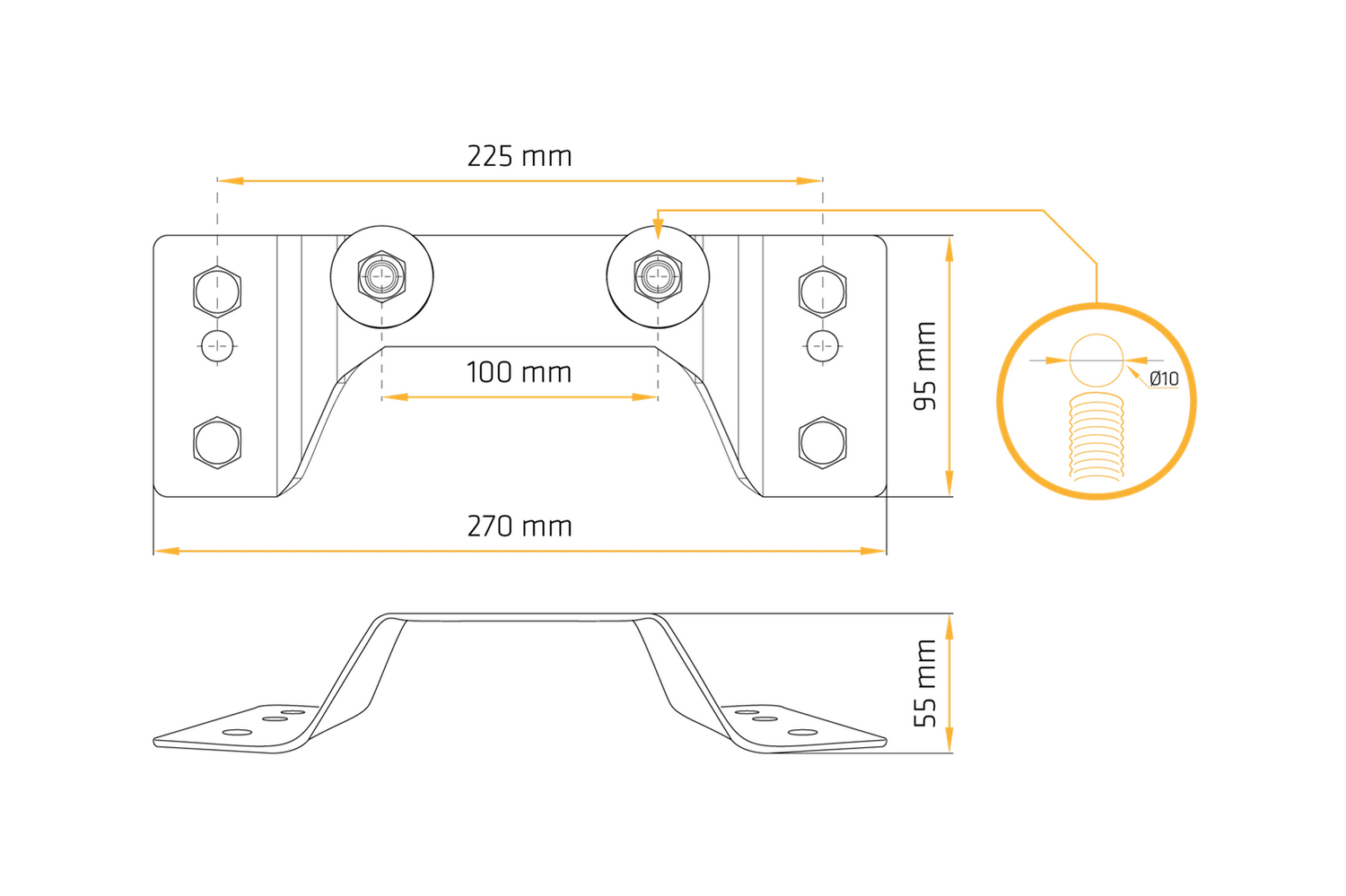 Een praktische reservewielbeugel, ontworpen voor montage aan de zijkant van aanhangwagens voor personenauto's uit de Unitrailer Garden Trailer KIPP- serie. De beugel maakt een stabiele en veilige bevestiging van een 155/70 R13 4x100 wiel mogelijk, waardoor u snel toegang heeft tot het reservewiel bij pech onderweg. De afmetingen van de beugel zijn 270×95 mm , wat de installatie vergemakkelijkt en de compatibiliteit met de zijstructuur garandeert.