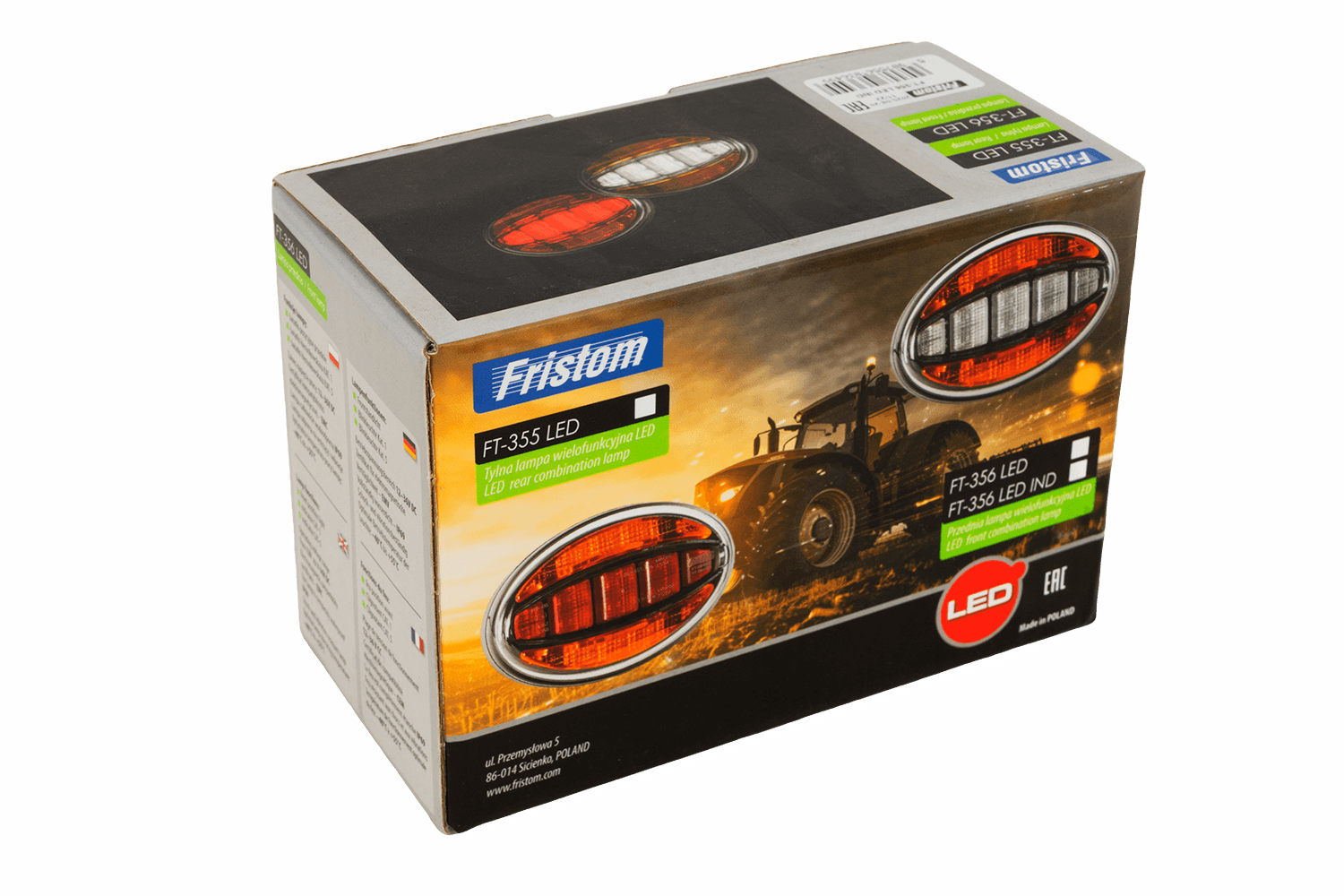 - FT-356 LED FRISTOM voorlicht, voor montage aan de linker- of rechterkant. Het biedt drie functies: positielicht en voor en achter richtingaanwijzers. Het wordt veel gebruikt in landbouwvoertuigen zoals tractoren, machines, maaidorsers en graafmachines.